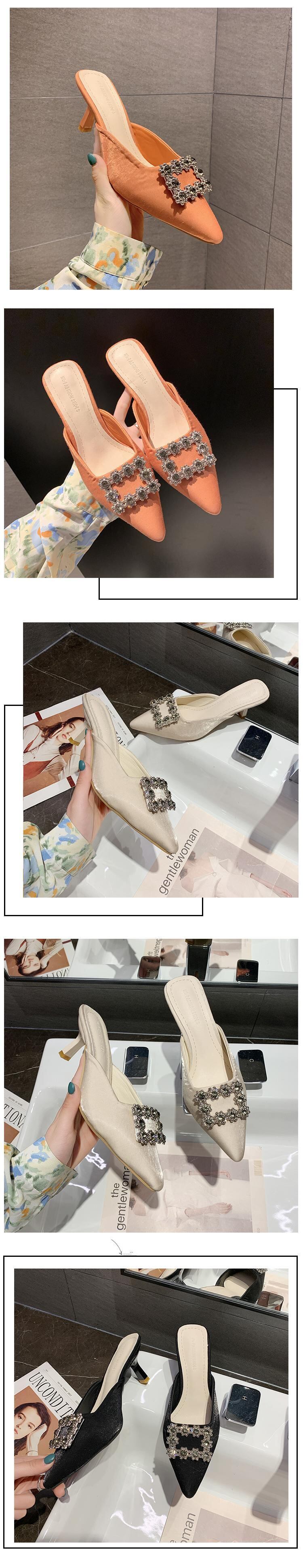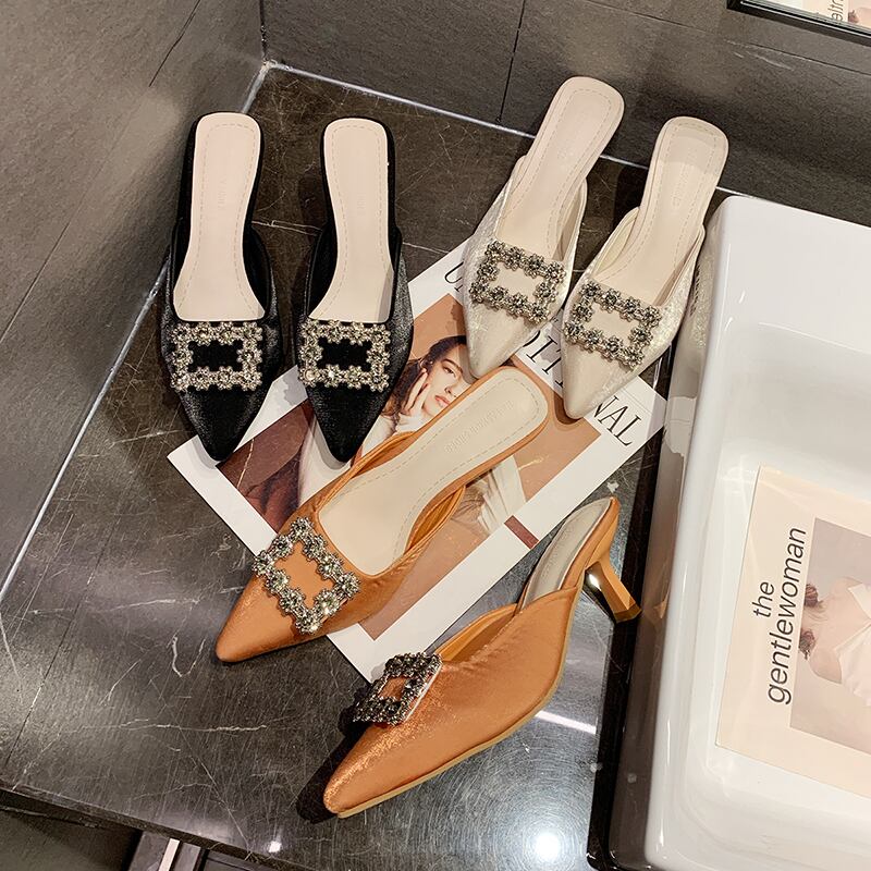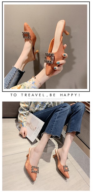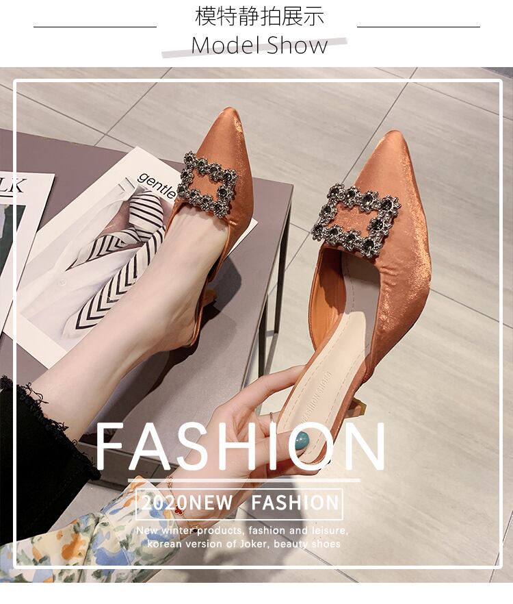 包頭セミスリッパ女性は2020春と夏の新しいinsバージョン野生の先のとがった薄いヒールのハイヒールミュールの女性を着ます 部族の婦人靴0456011