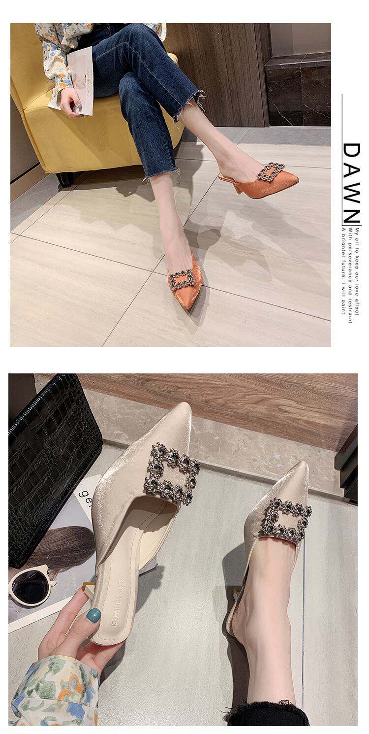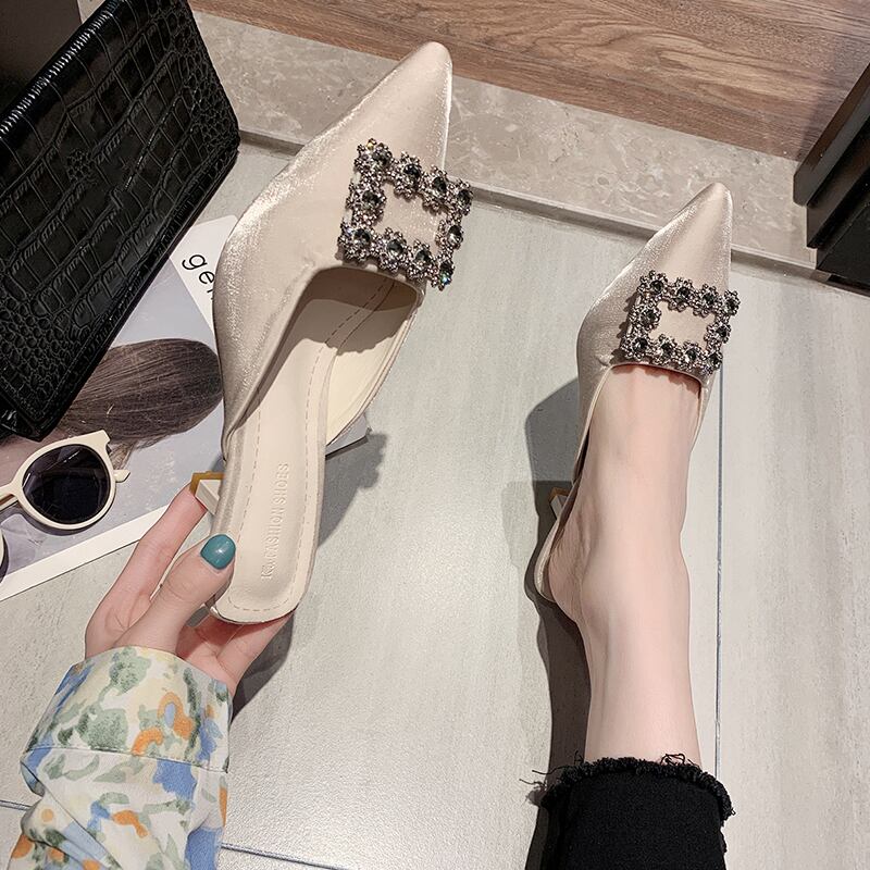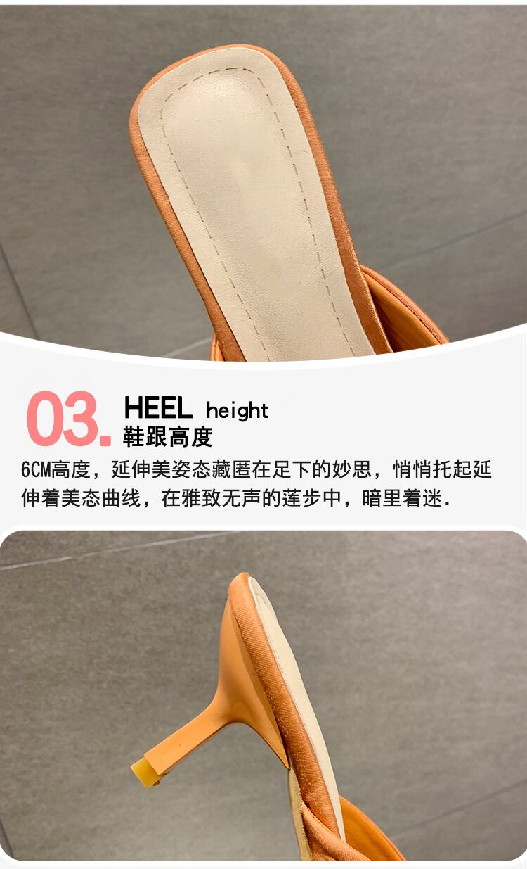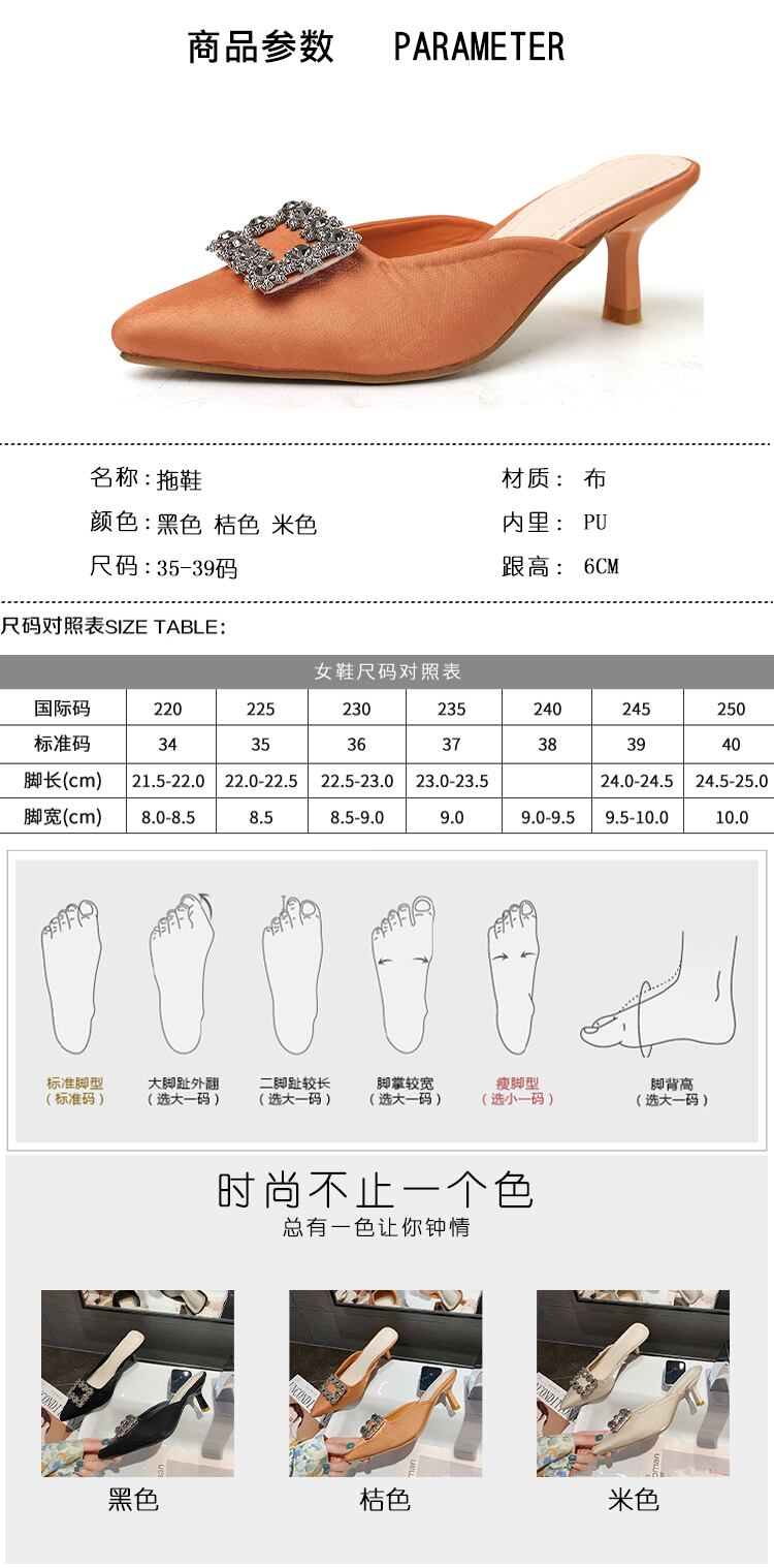 包頭セミスリッパ女性は2020春と夏の新しいinsバージョン野生の先のとがった薄いヒールのハイヒールミュールの女性を着ます 部族の婦人靴0456011