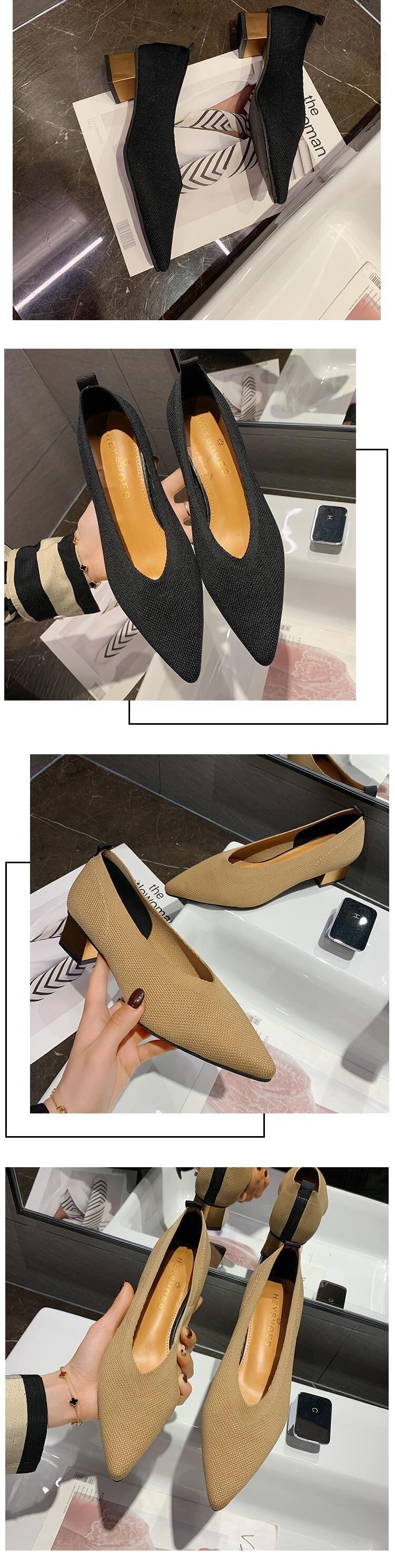 シングルシューズ女性2020年春新しい浅い口先のとがった厚いヒールエンドウシューズ靴レトロバージョンのハイヒール気質ミッドヒールレディースシューズ 部族の婦人靴9222669