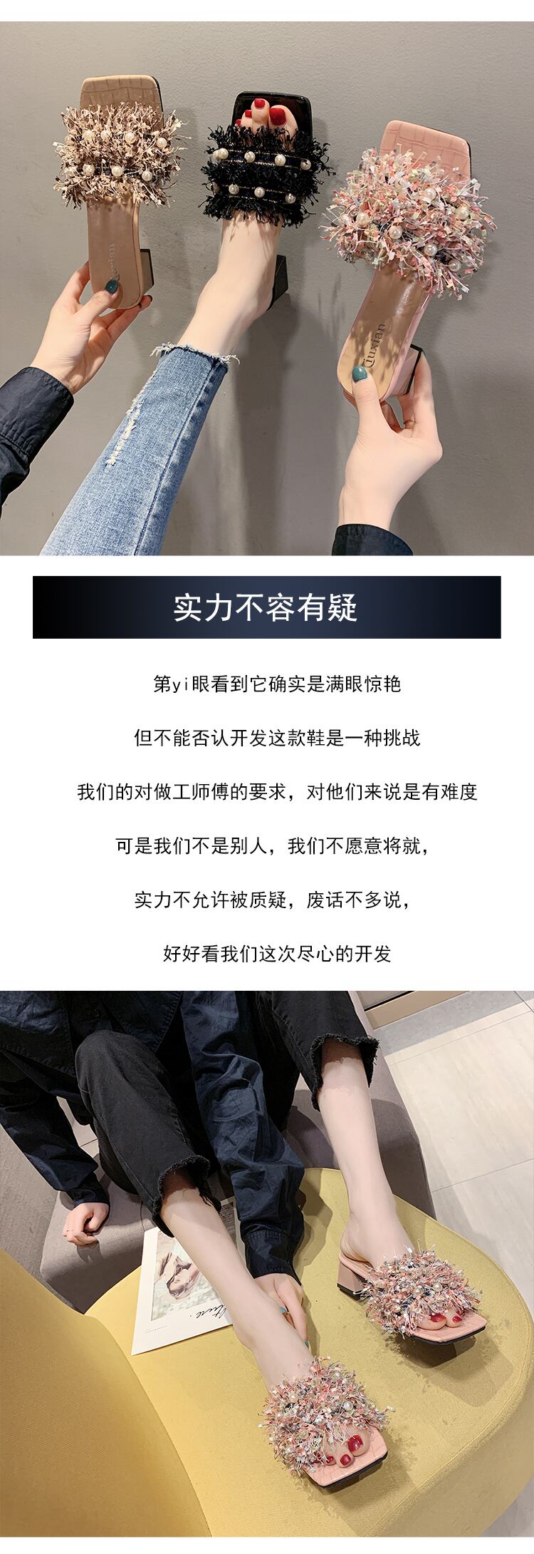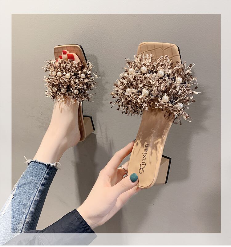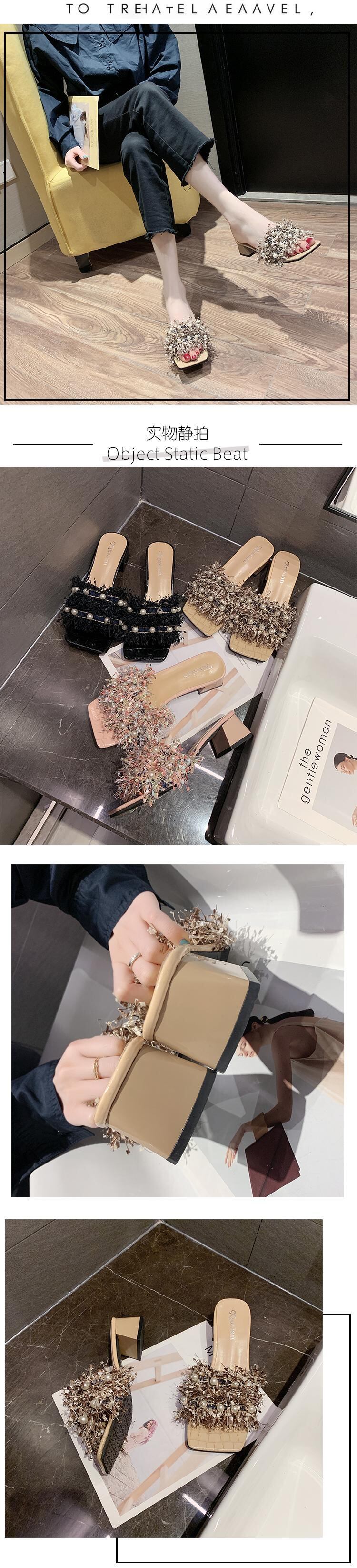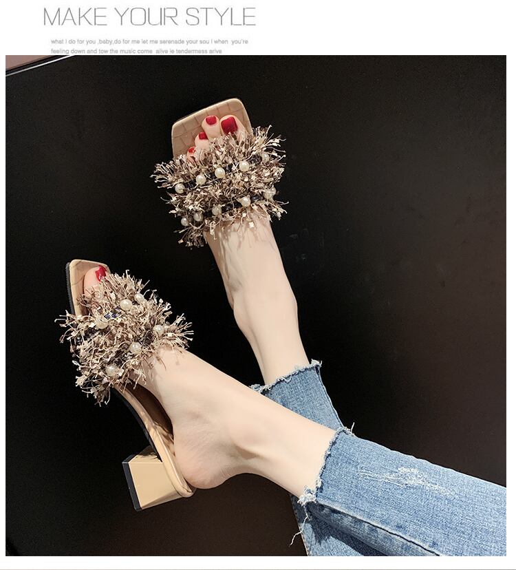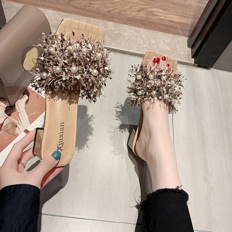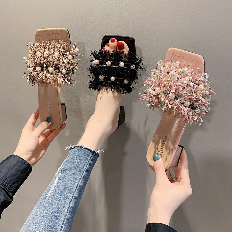 女性のサンダルとスリッパは2020年夏の新しいファッション野生の真珠の正方形の頭を開いたつま先の厚さで単語のドラッグの女性を着用します 部族の婦人靴6950500