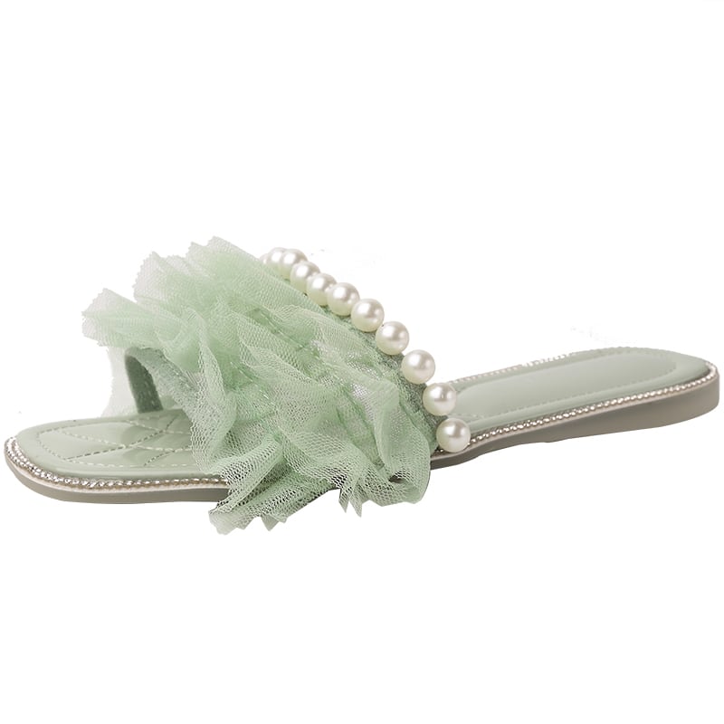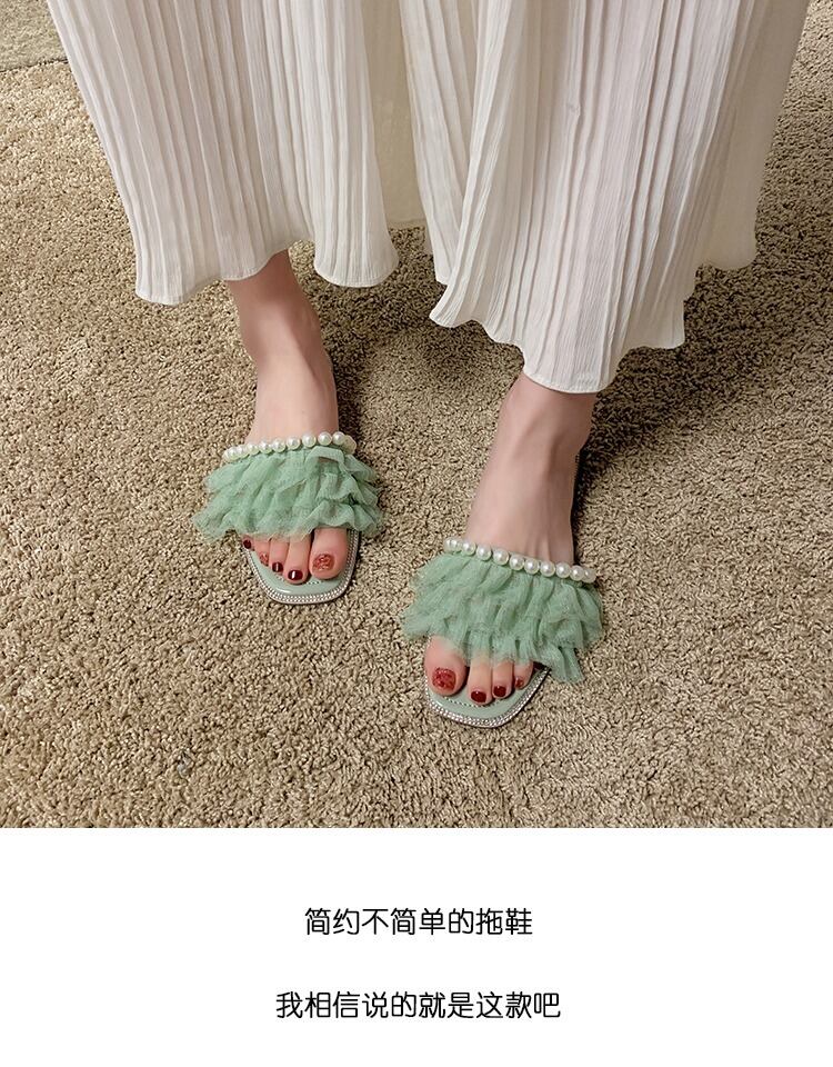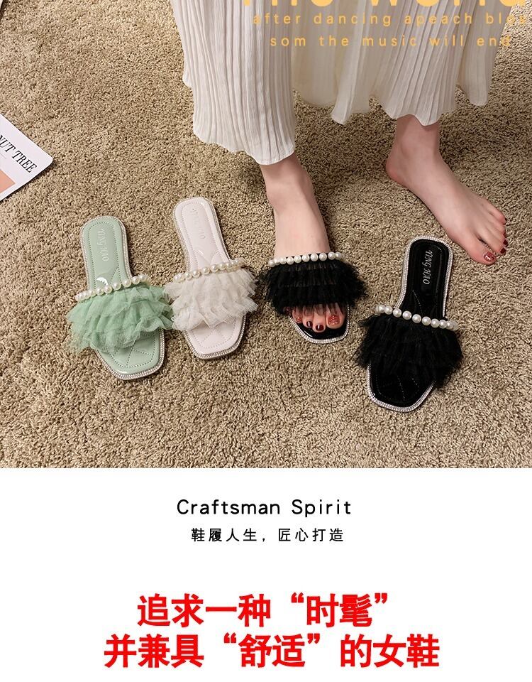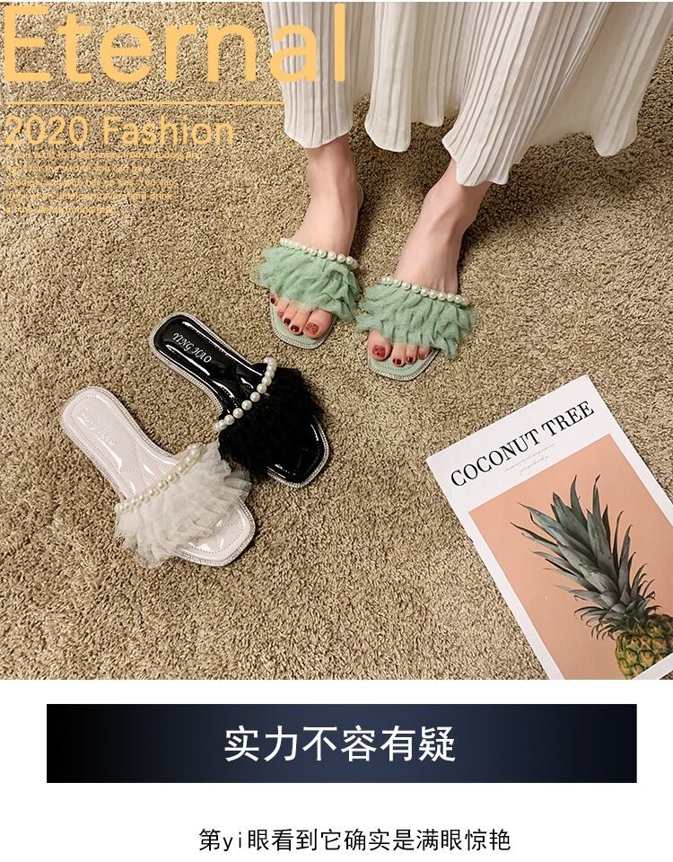 スリッパの女性は2020年の春と夏の新しいバージョンの正方形のヘッドフラットボトム野生の真珠の妖精のスタイルのスリッパの女性の潮を着用します 部族の婦人靴1941952