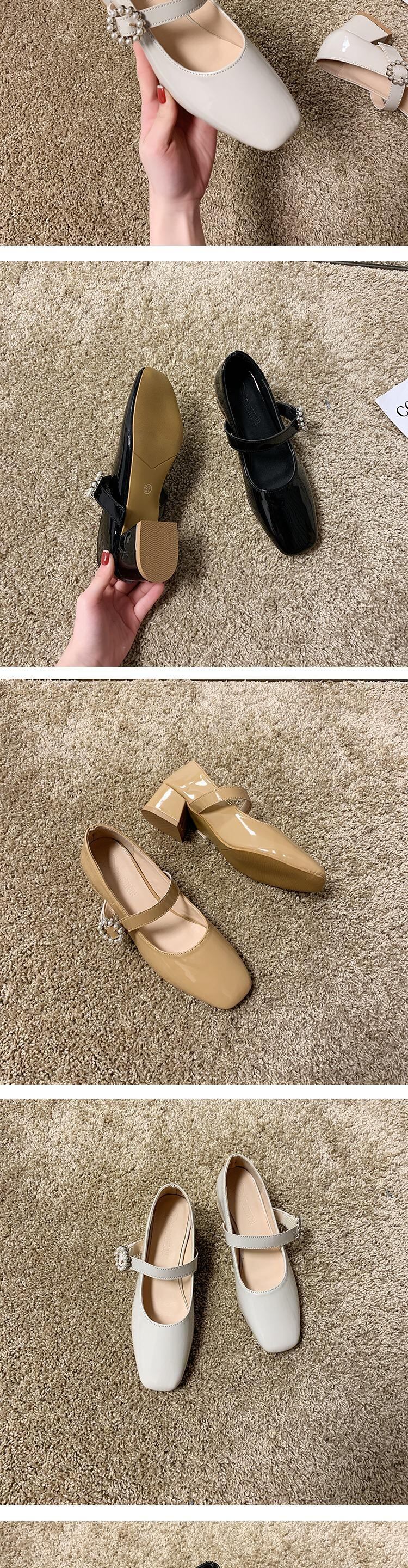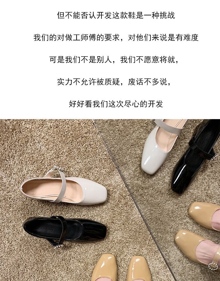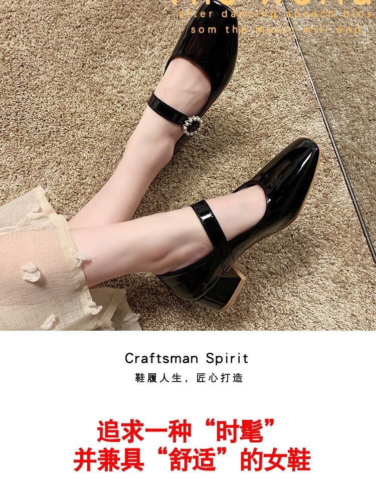 厚いヒールシングルシューズレディース2020春ネットレッドパール浅い口エンドウシューズワイルドミッドヒール深夜妖精風おばあちゃんシューズ 部族の婦人靴5192935