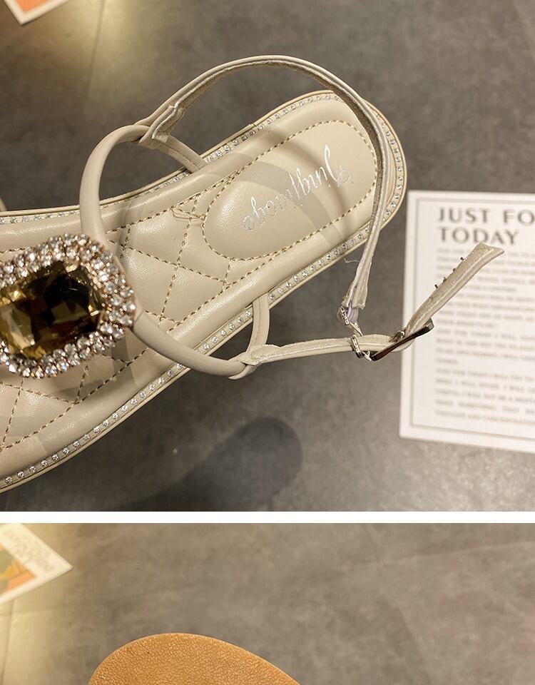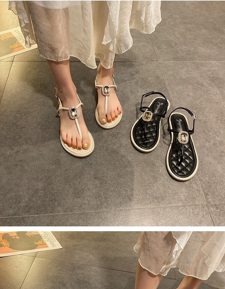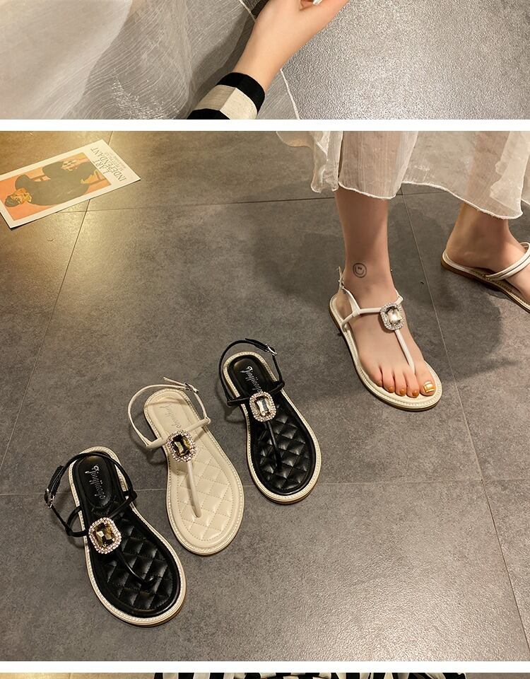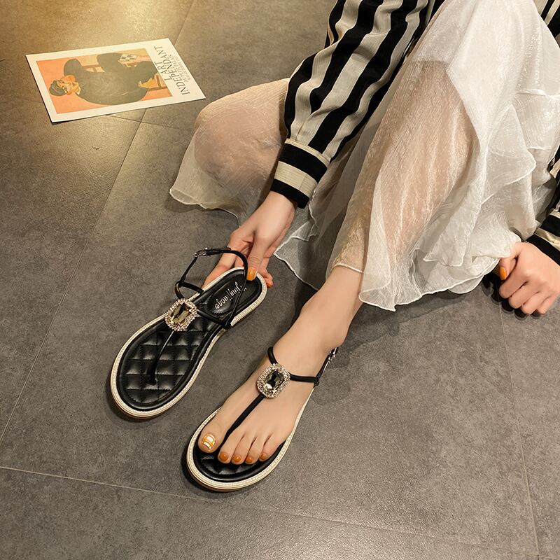 ローマのサンダル女性2020春と夏の新しいネット赤学生野生フラットボトムラインストーンワードクリップつま先ビーチシューズ女性 部族の婦人靴2661786
