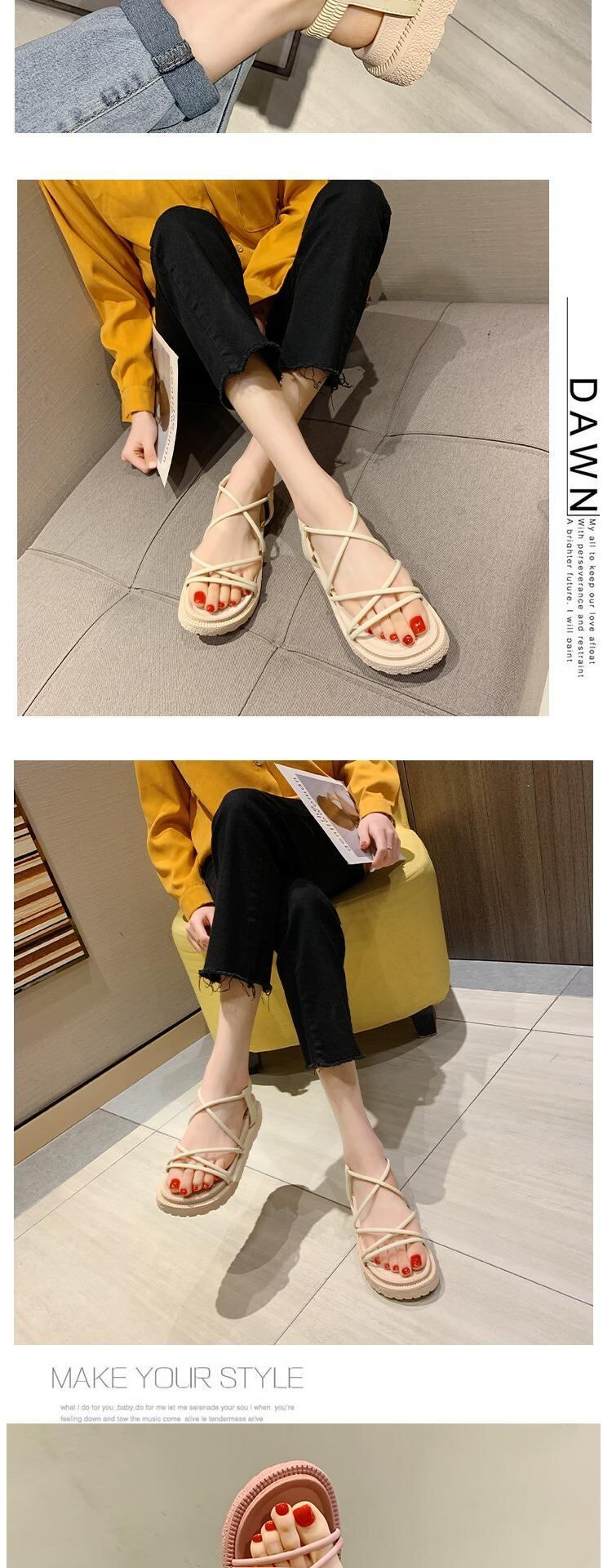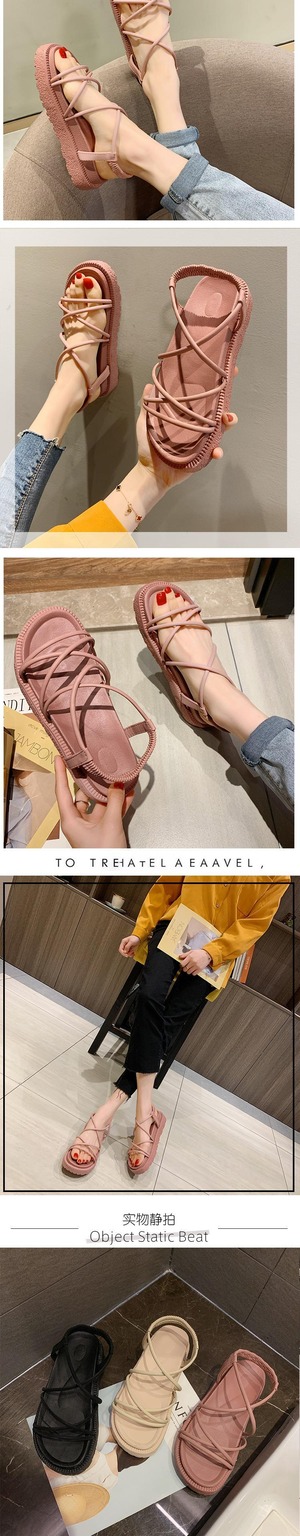 ネット赤いサンダル女性の妖精風2020新しい夏の野生のサンダルins潮学生厚い底ローマの靴 部族の婦人靴6418339