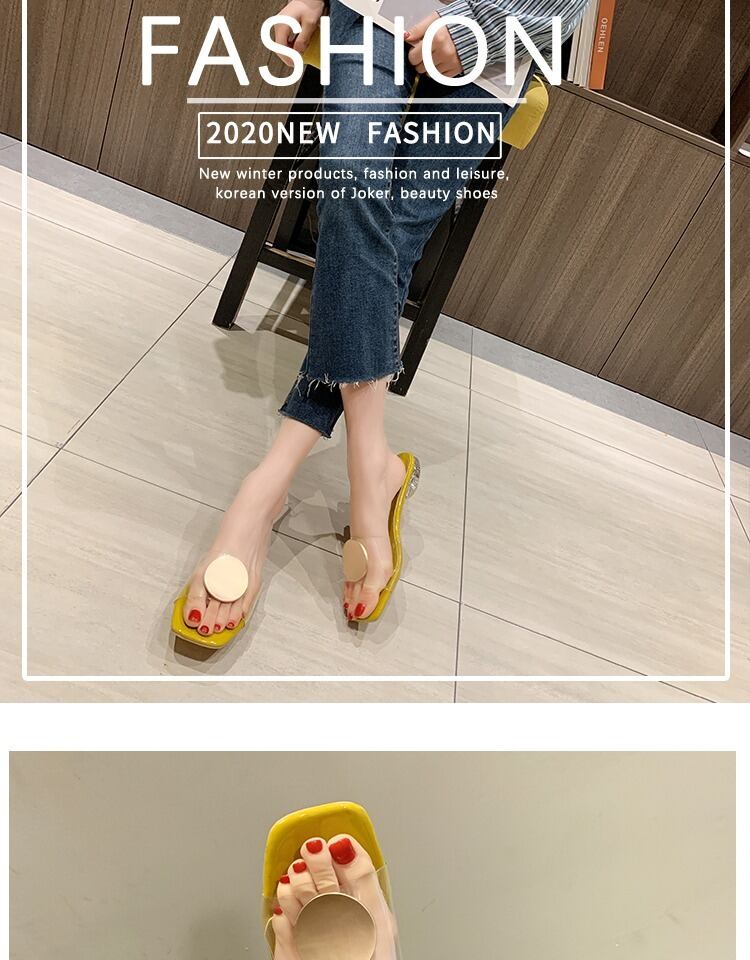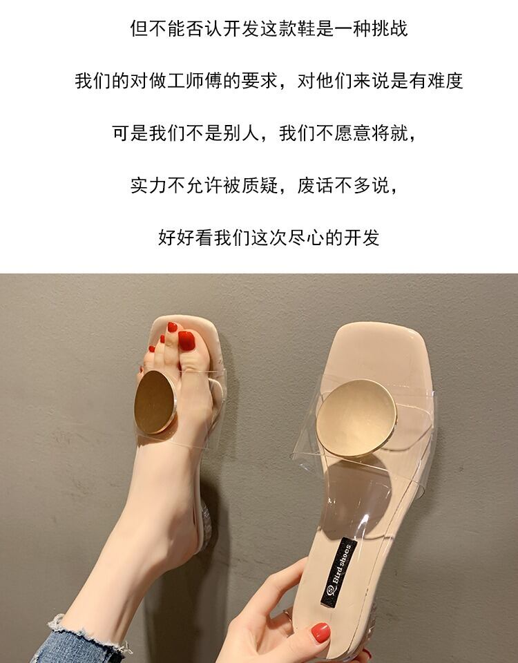 スリッパ女性は2020夏の靴を着用します女性の新しい金属のバックルは透明なワードドラッグビーチ砂のビーチの潮で厚く 部族の婦人靴3372032