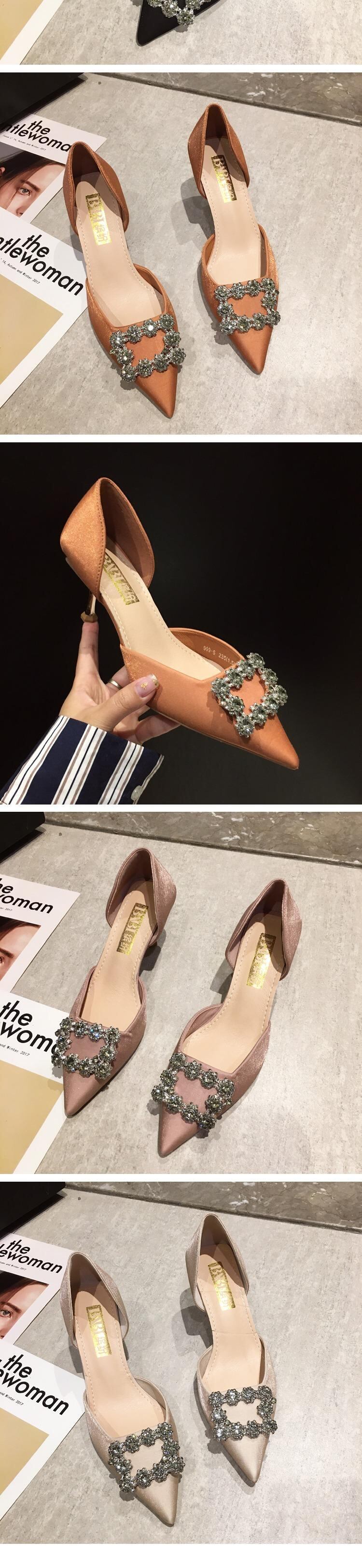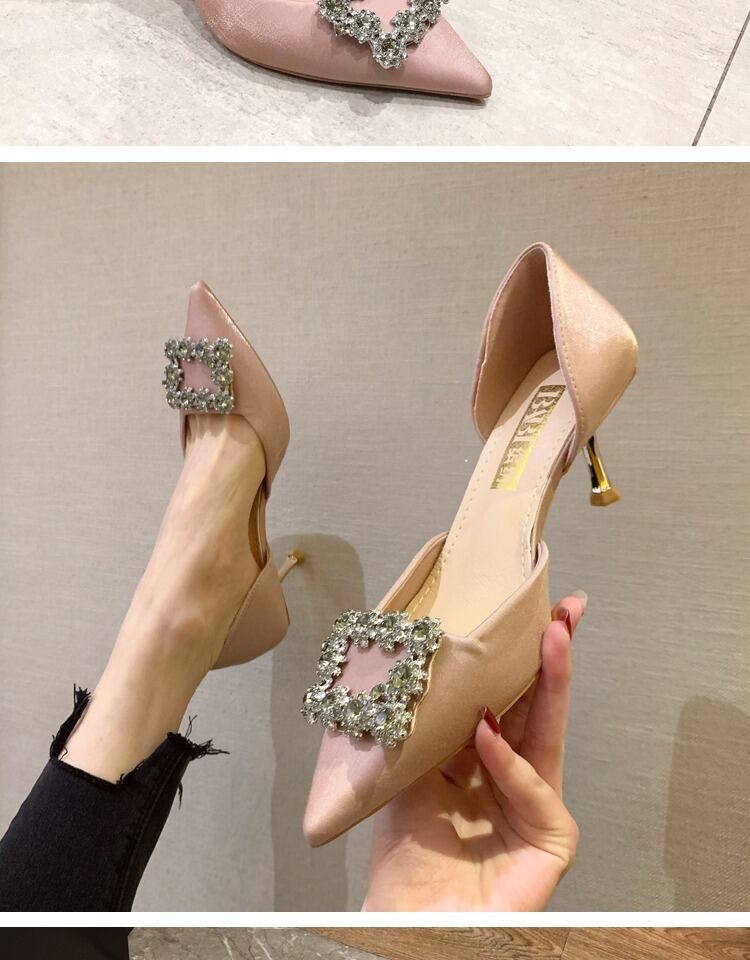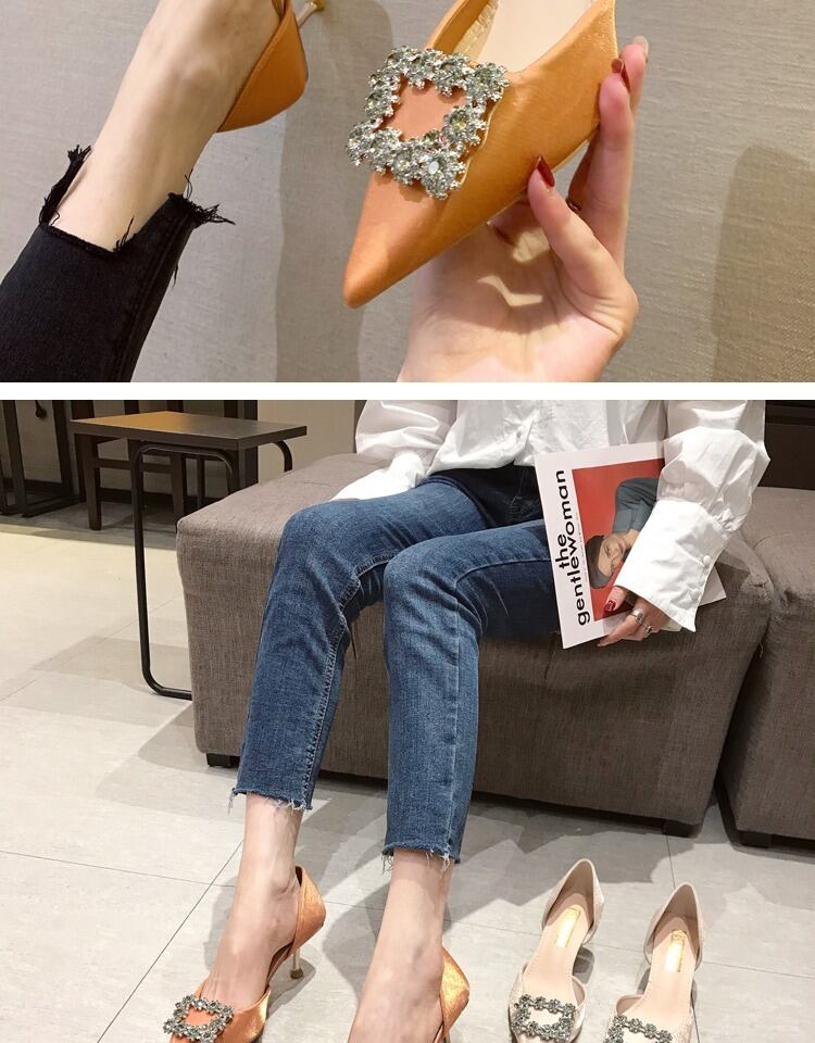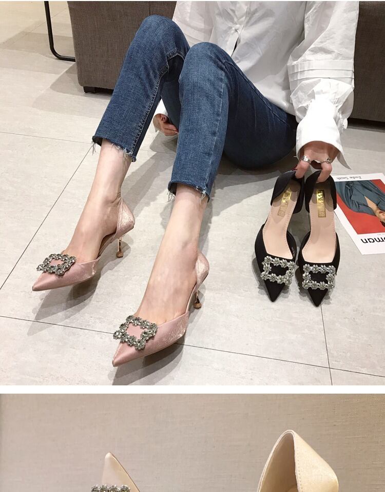 フレンチスティレットヒール女性2020春と秋の新しいネット赤いラインストーン野生の浅い口尖った単一の靴の女性 部族の婦人靴6855715