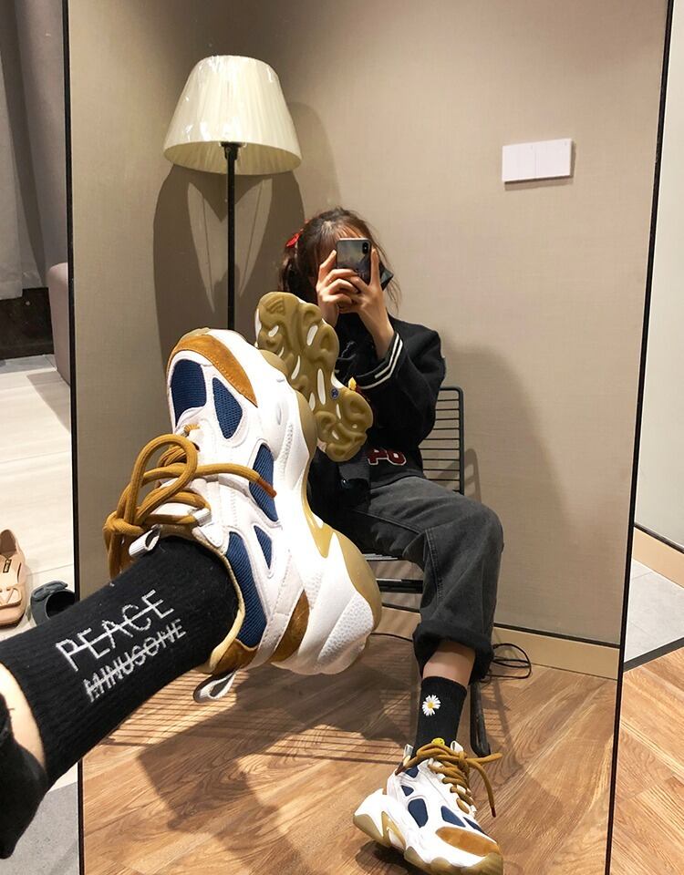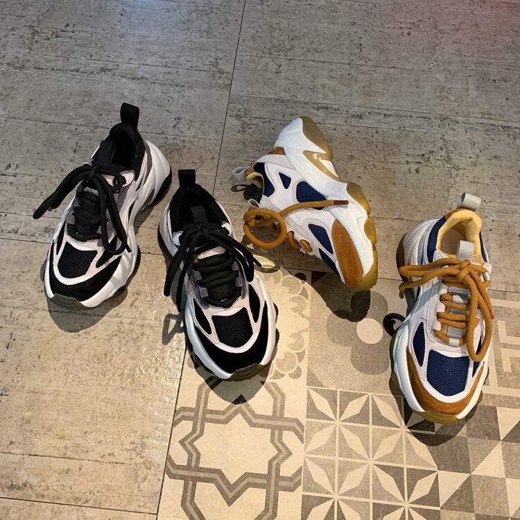 カラーマッチング古い靴女性インタイド2019秋と冬の新しいスポンジケーキ厚底野生ネット赤学生スポーツシューズ 部族の婦人靴9198681