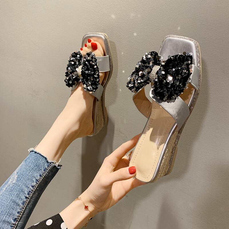 セミスリッパレディース2020新アウターネットレッドスリーブトウウェッジヒールサンダルバージョンフェアリーハイヒールプラッツスリッパレディース 部族の婦人靴3492041