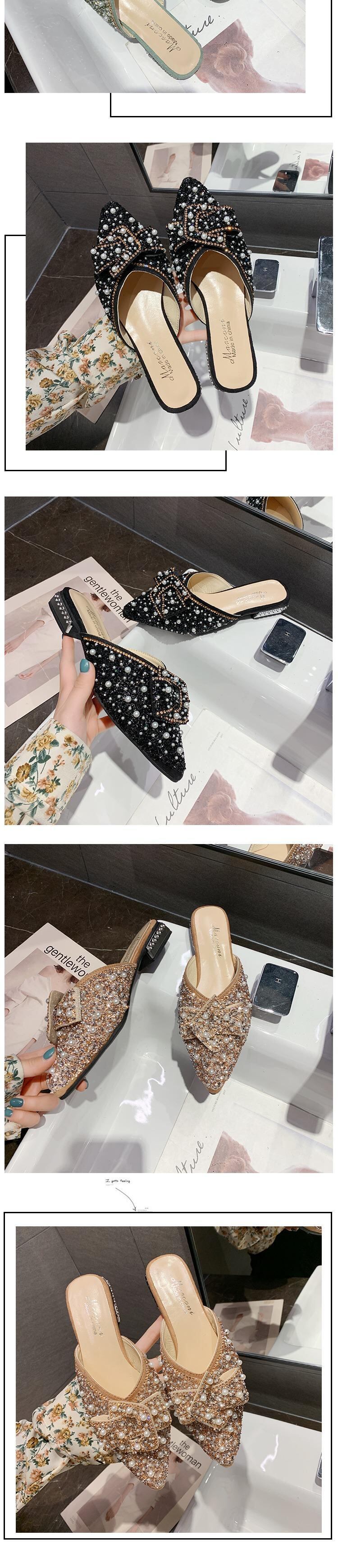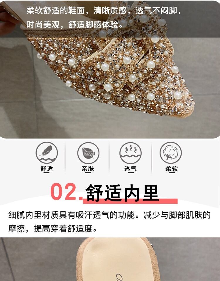 包頭ハーフスリッパ女性の摩耗2020新しい春の野生の厚いラインストーンミュラーの靴のファッション女性のサンダル 部族の婦人靴1200368
