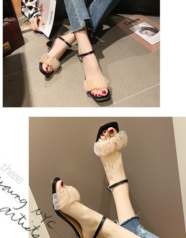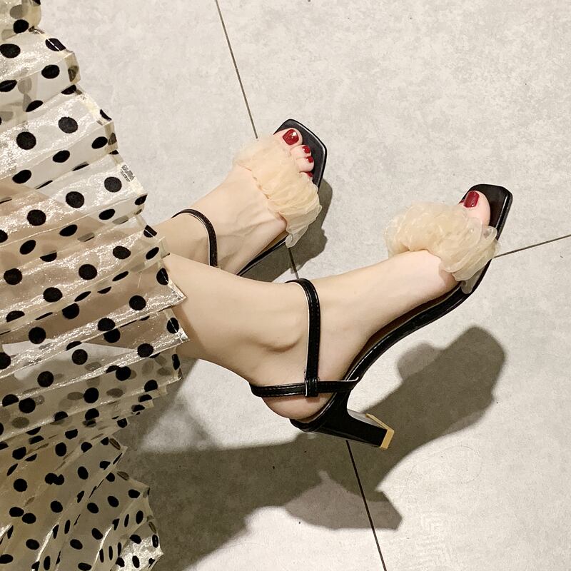ヒールの女性2020新しい夏の野生の妖精スタイルの単語のバックルサンダル女性のネット赤いレースの厚い 部族の婦人靴5018686