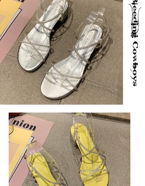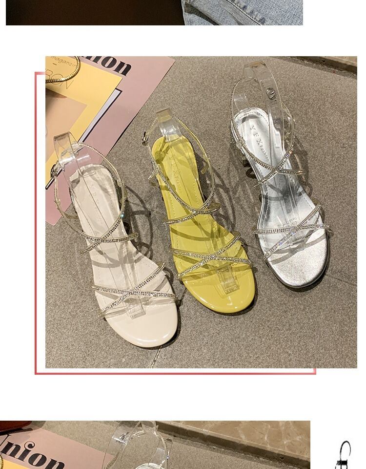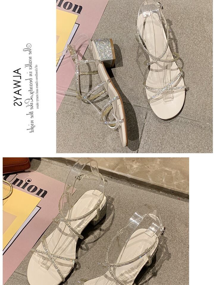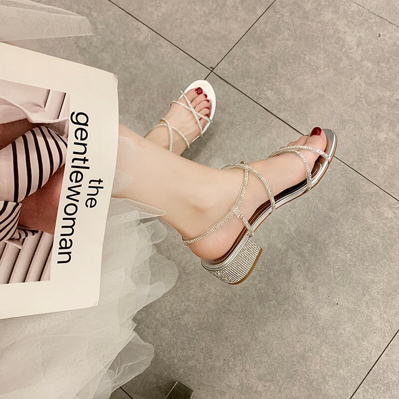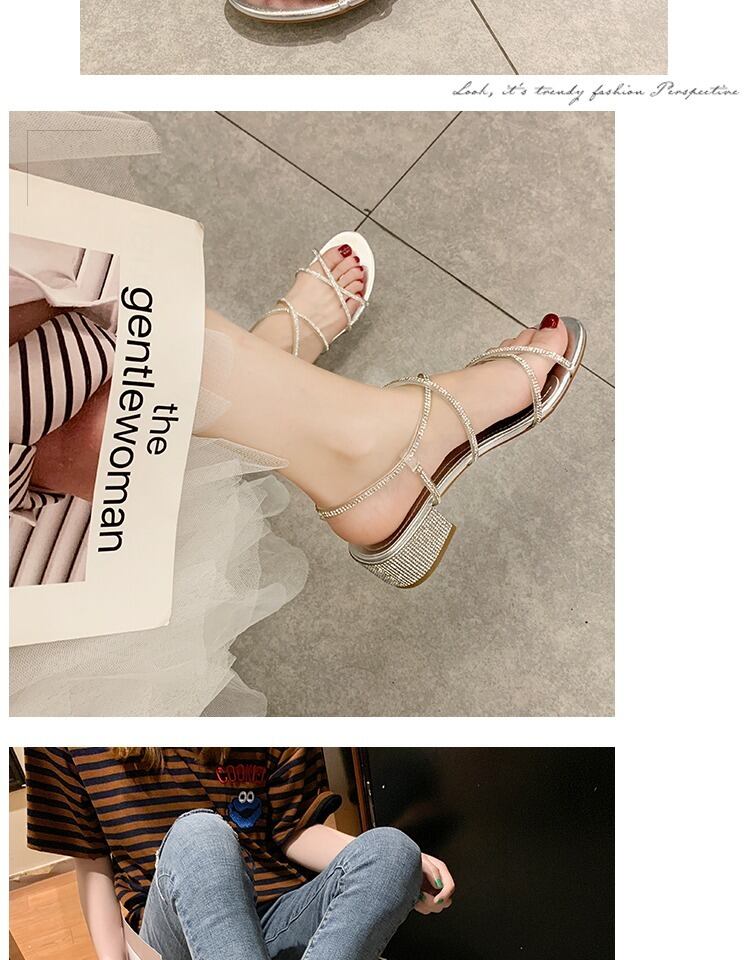 ローマのサンダル女性の妖精の風2020新しい夏のミッドヒールのラインストーン厚いミッドヒールのクロスワードバックルネット赤 部族の婦人靴6518473