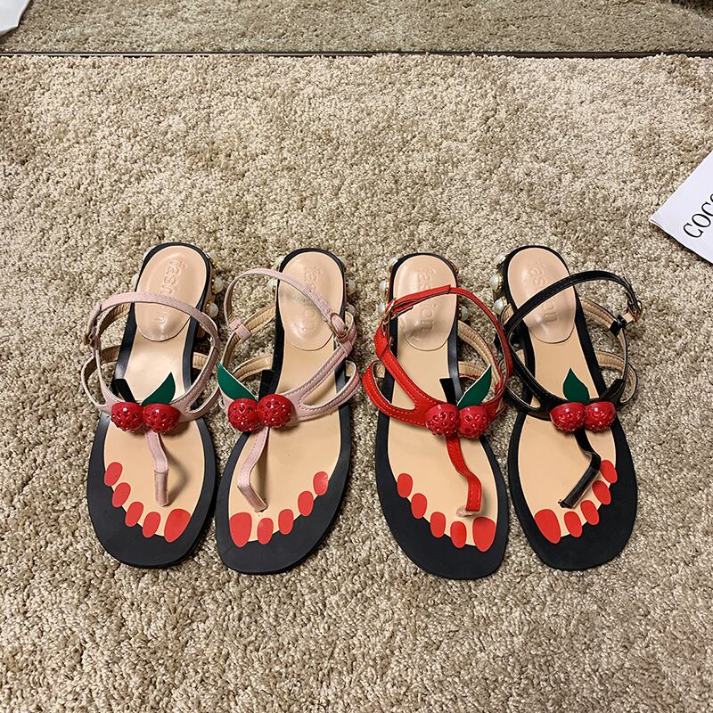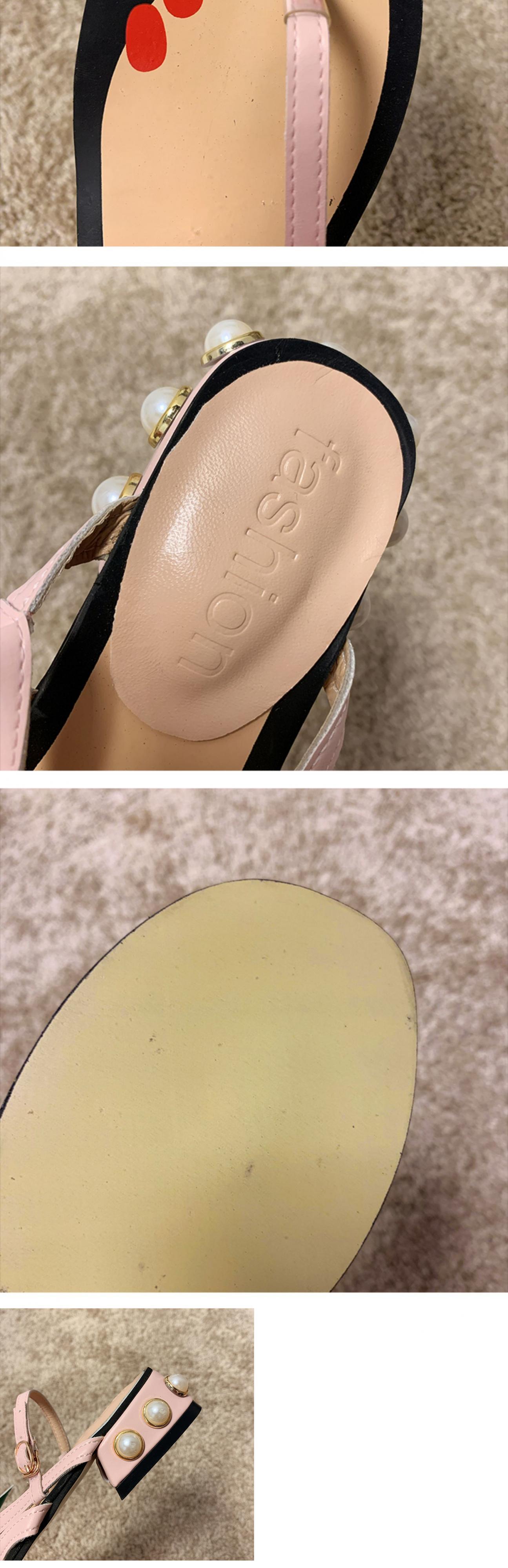 サンダル女性の妖精風夏2020新しいファッション野生のネット赤い真珠の厚いヒールクリップつま先ローマ靴潮 部族の婦人靴0944897