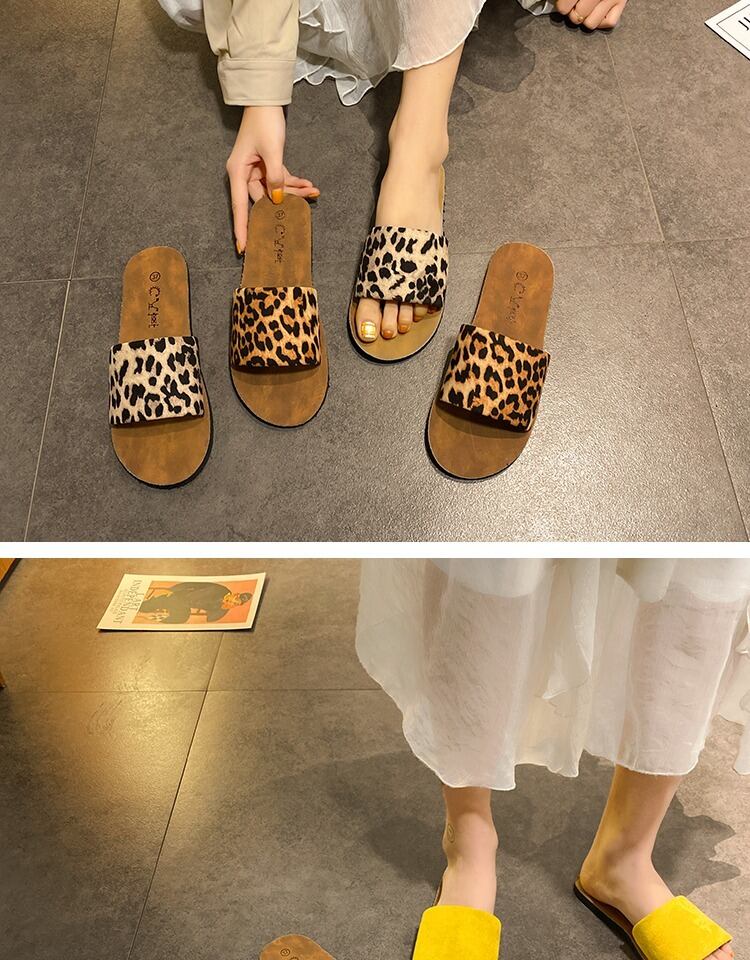 香港スタイルのスリッパ女性は2020年夏の新しいハートの靴フラットボトムソフトボトムノンスリップヒョウワードサンダルを着用します 部族の婦人靴1214683