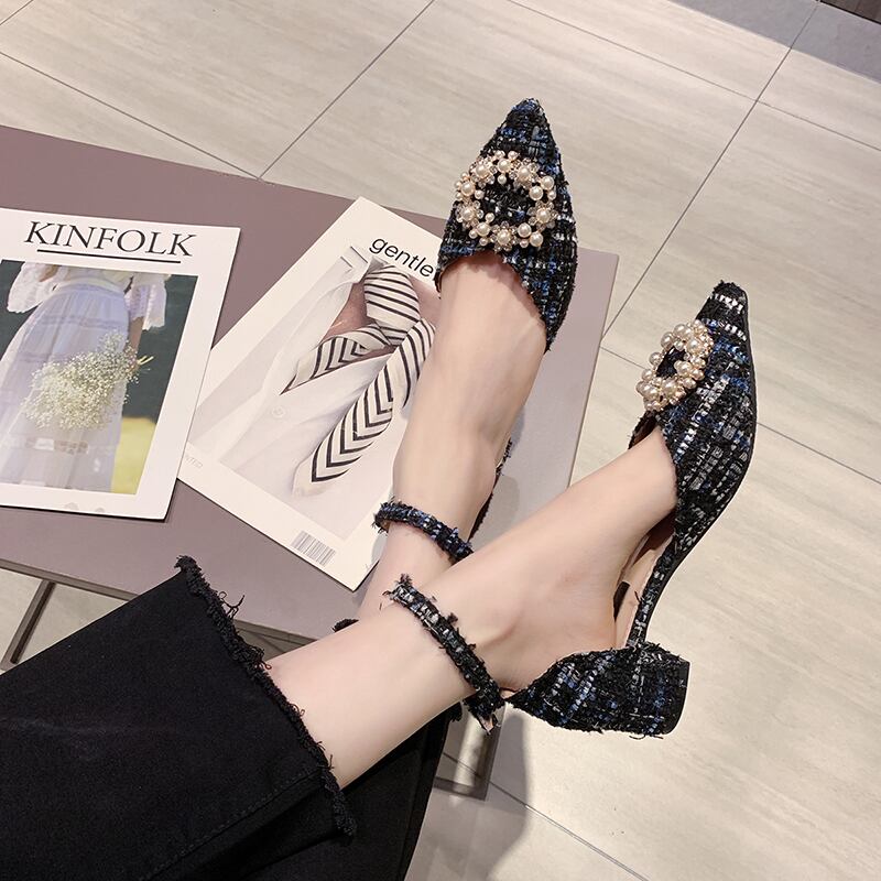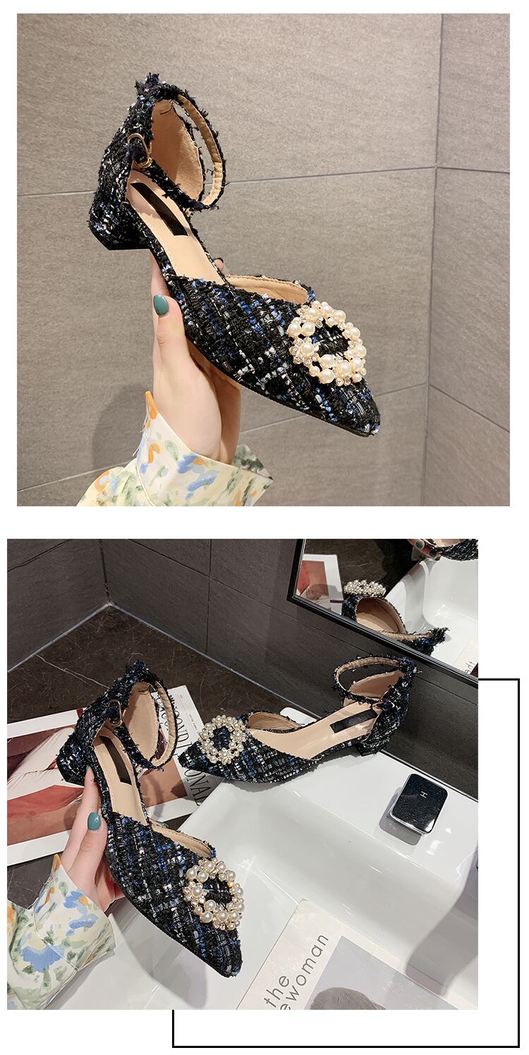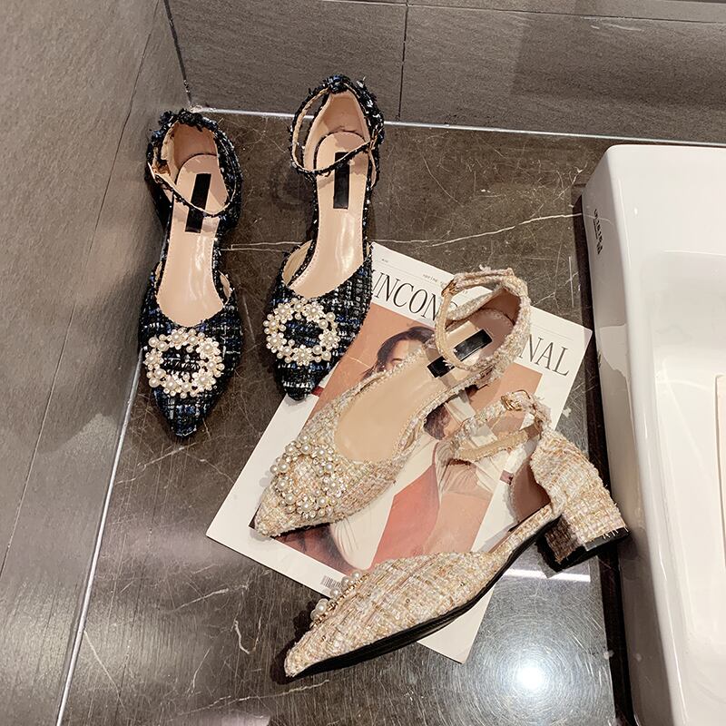 単一の靴の女性の春の真珠のファッションの2020年新バージョンは、野生のバックル中空ローマのサンダルの女性を指摘しました 部族の婦人靴1470304