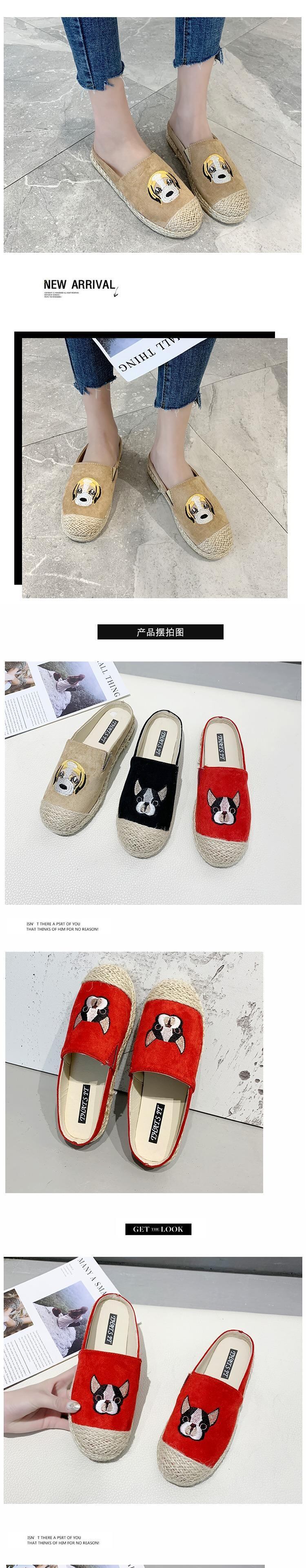 靴女性2020新しいバージョンの小さなかわいい犬包頭漁師ハーフスリッパ1ペダル怠惰な摩耗ミュラーシューズ 部族の婦人靴2349787