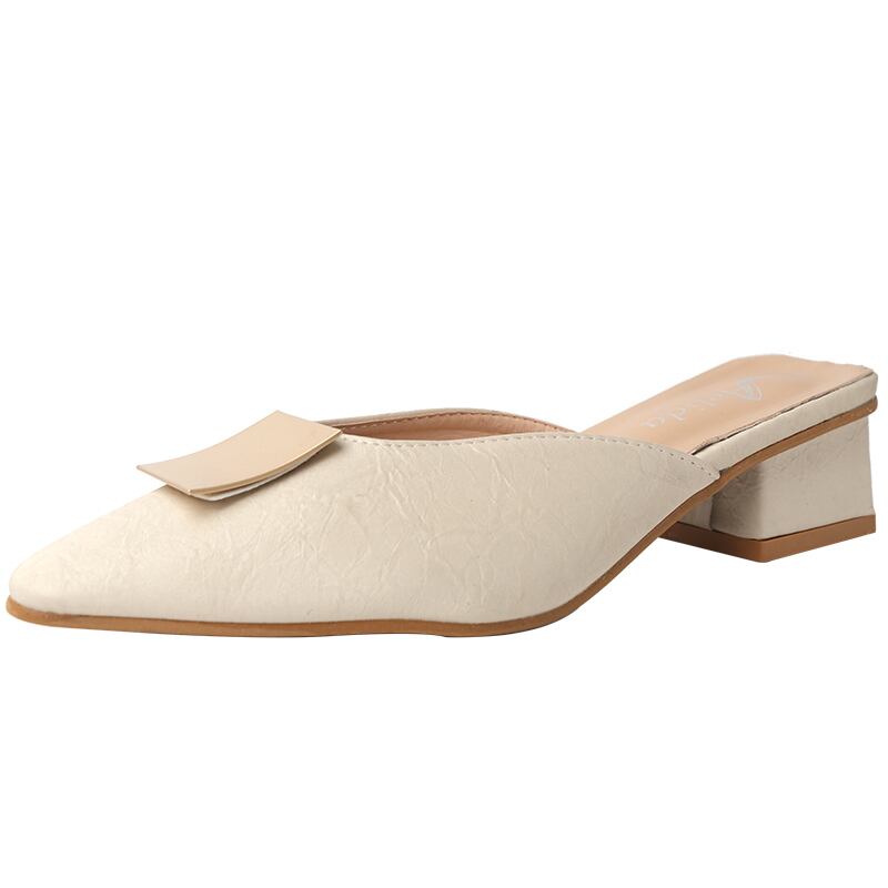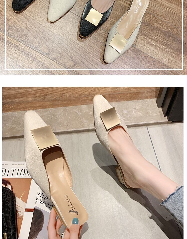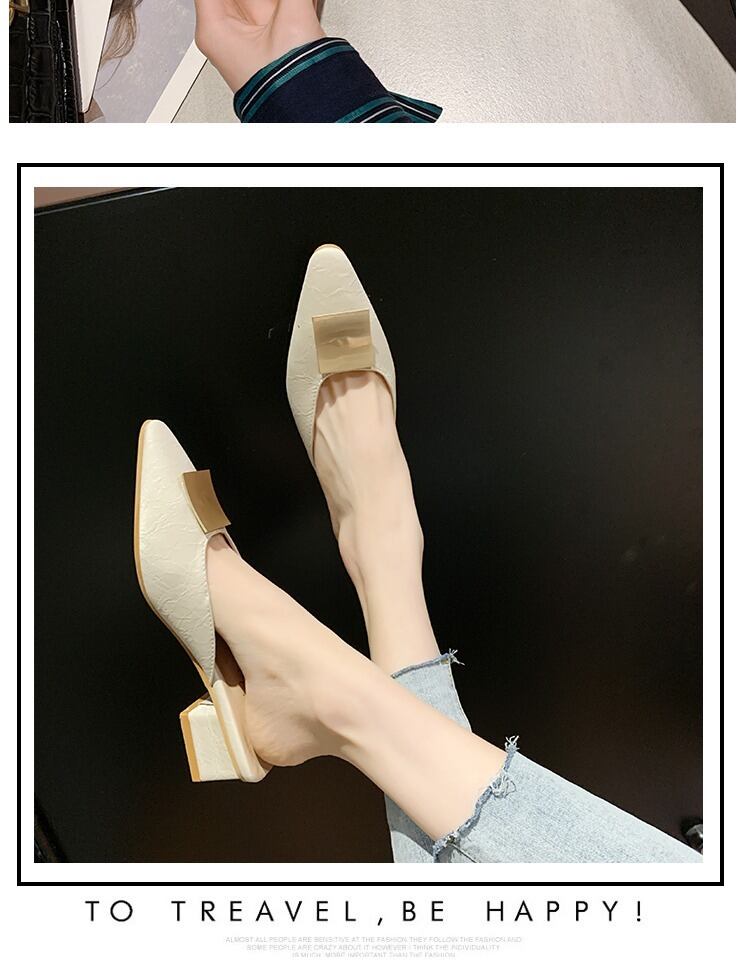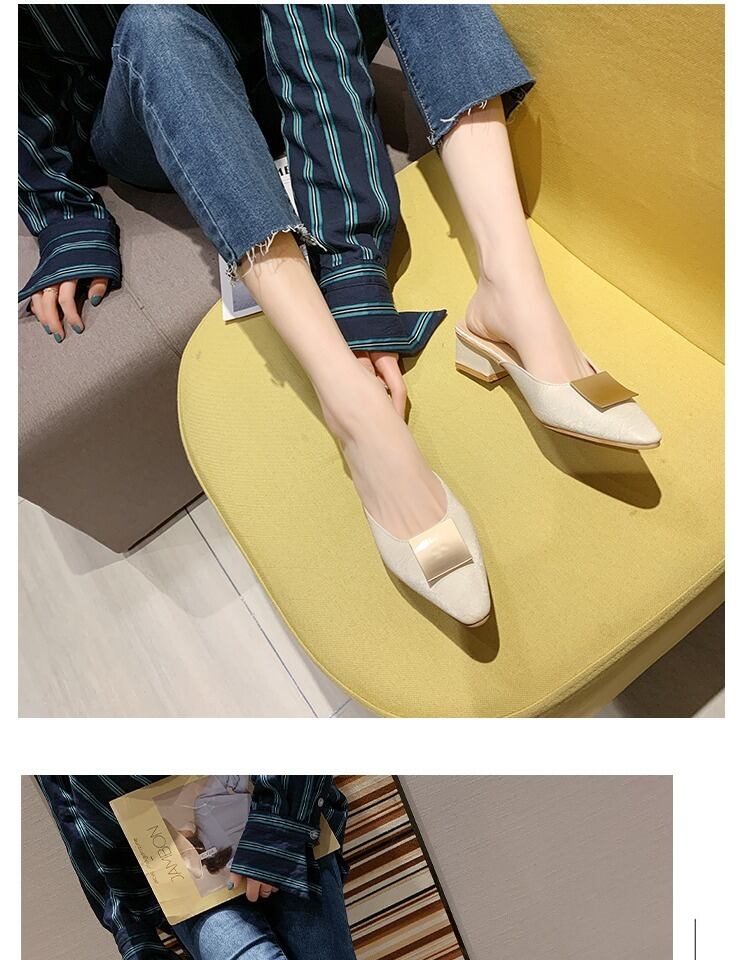 包頭ハーフスリッパ女性は2020年春に新しいファッション野生の尖った尖った厚いヒールのレトロミューラー靴の潮を着用します 部族の婦人靴6708912