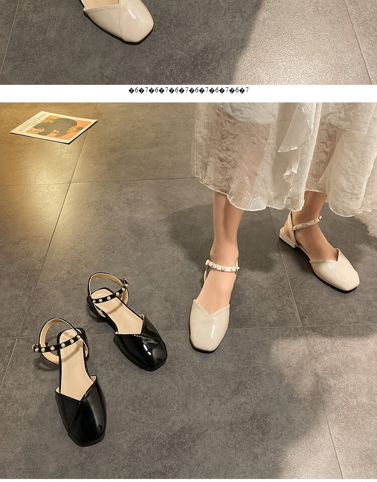 真珠の野生の妖精スタイルのフラットボトムスクエアヘッドバックルローマンシューズの女性のサンダル女性2020春と夏の新バージョン 部族の婦人靴1309498