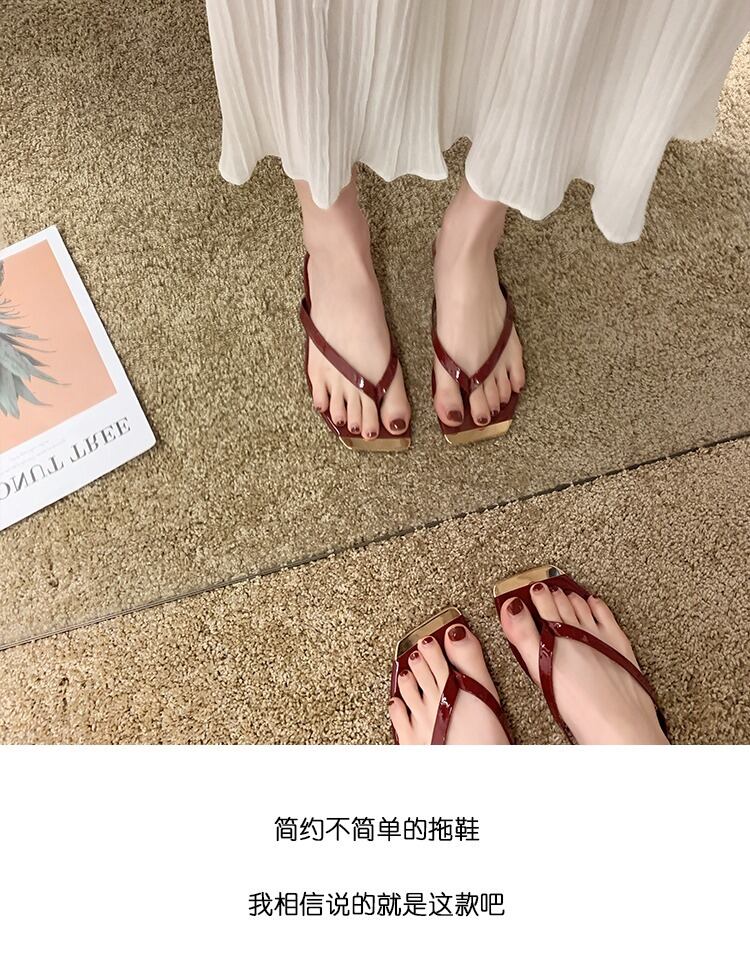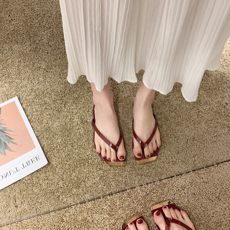ビーチサンダルの女性が2020年の新しい夏のインスクエアヘッドクリップフィートワイルドネット赤い夏のサンダルとスリッパを着用します。 部族の婦人靴0948852