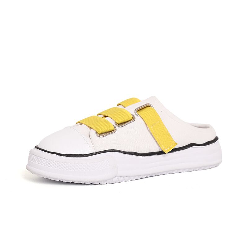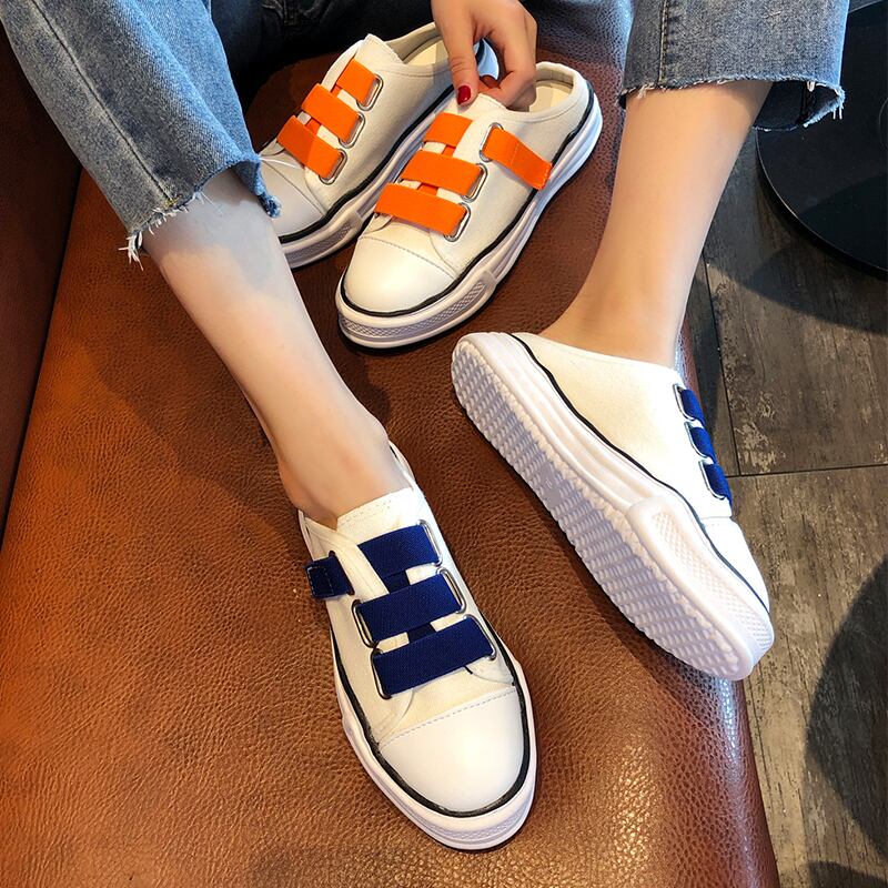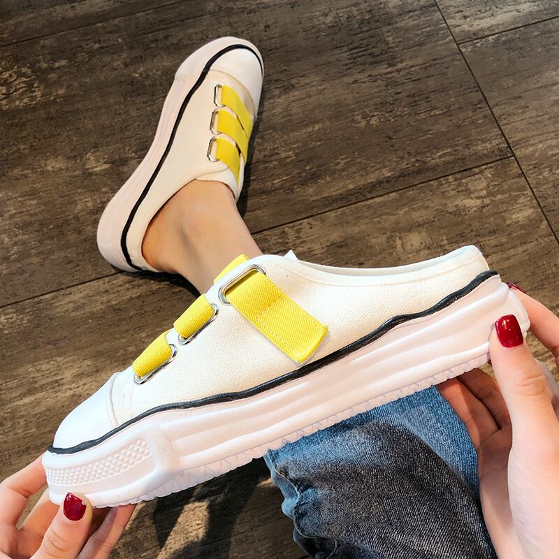 キャンバス包頭ドラッグ女性2020春の新しいスリッパ野生のフラットホワイトシューズネット赤ハーフドラッグミュラーシューズ 部族の婦人靴4896631