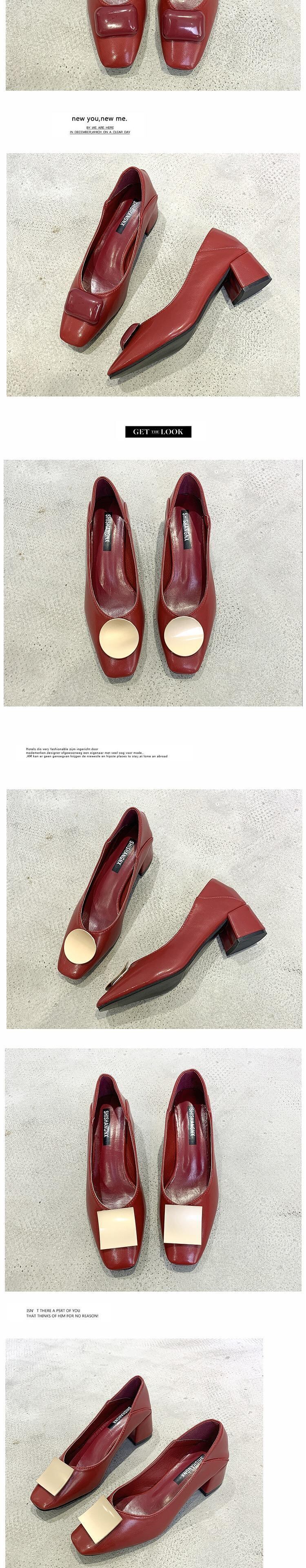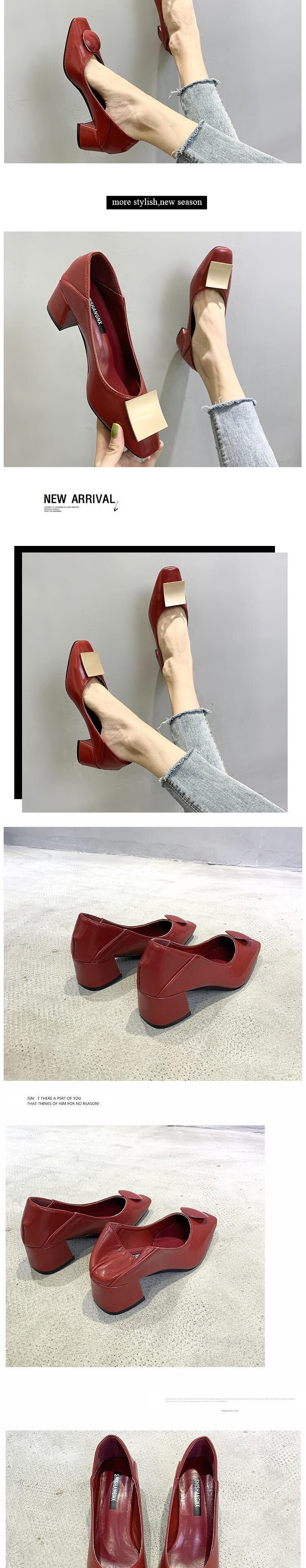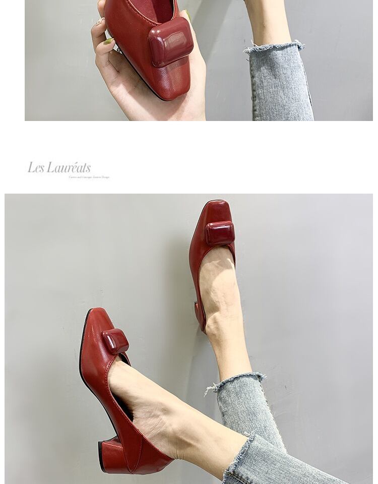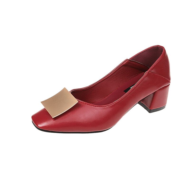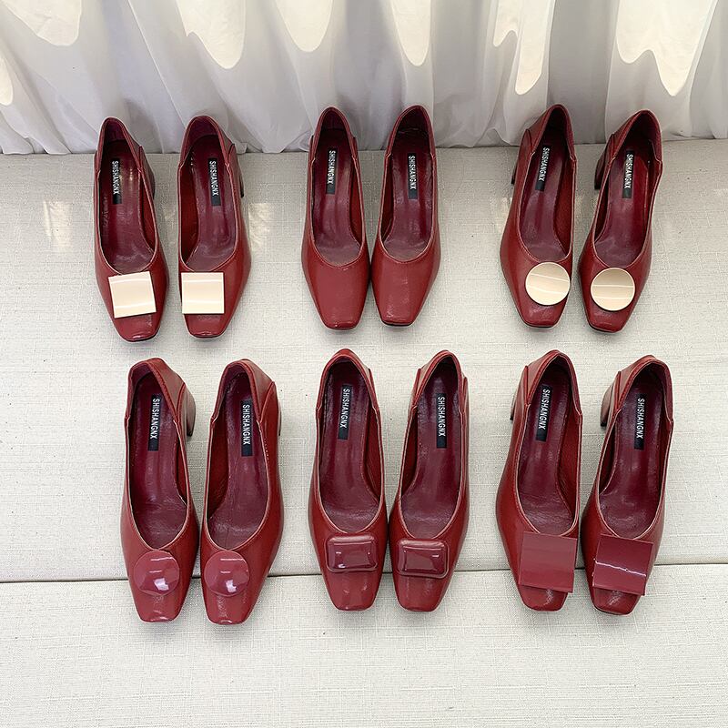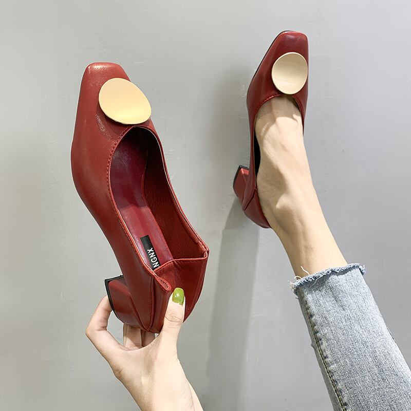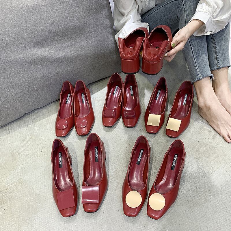 スクエアヘッド厚いヒールの靴の女性2019秋の新ネット赤スクープシューズ女性ラウンドバックルバージョン野生のインエンドウ豆の靴の女性 部族の婦人靴0037656