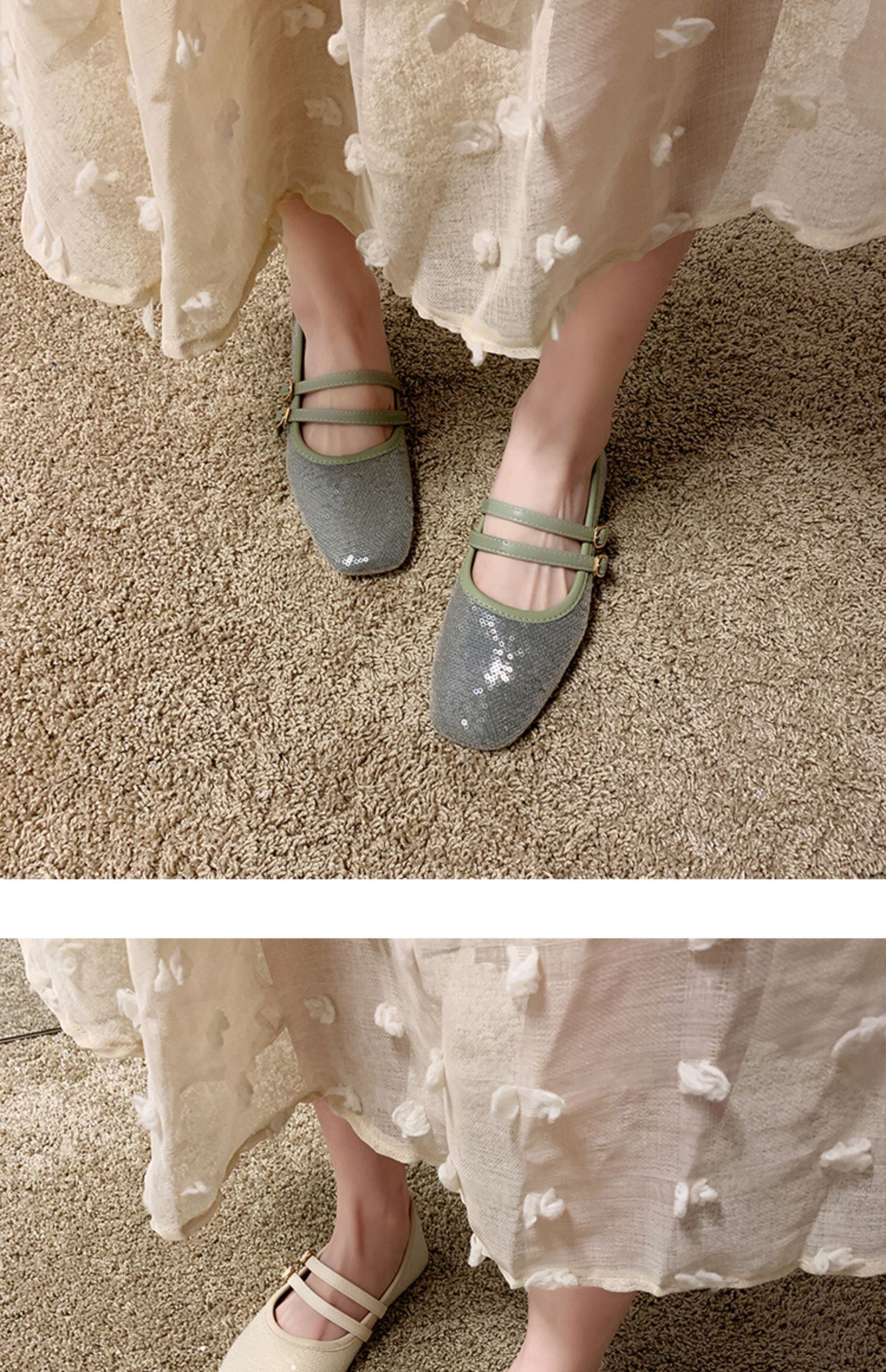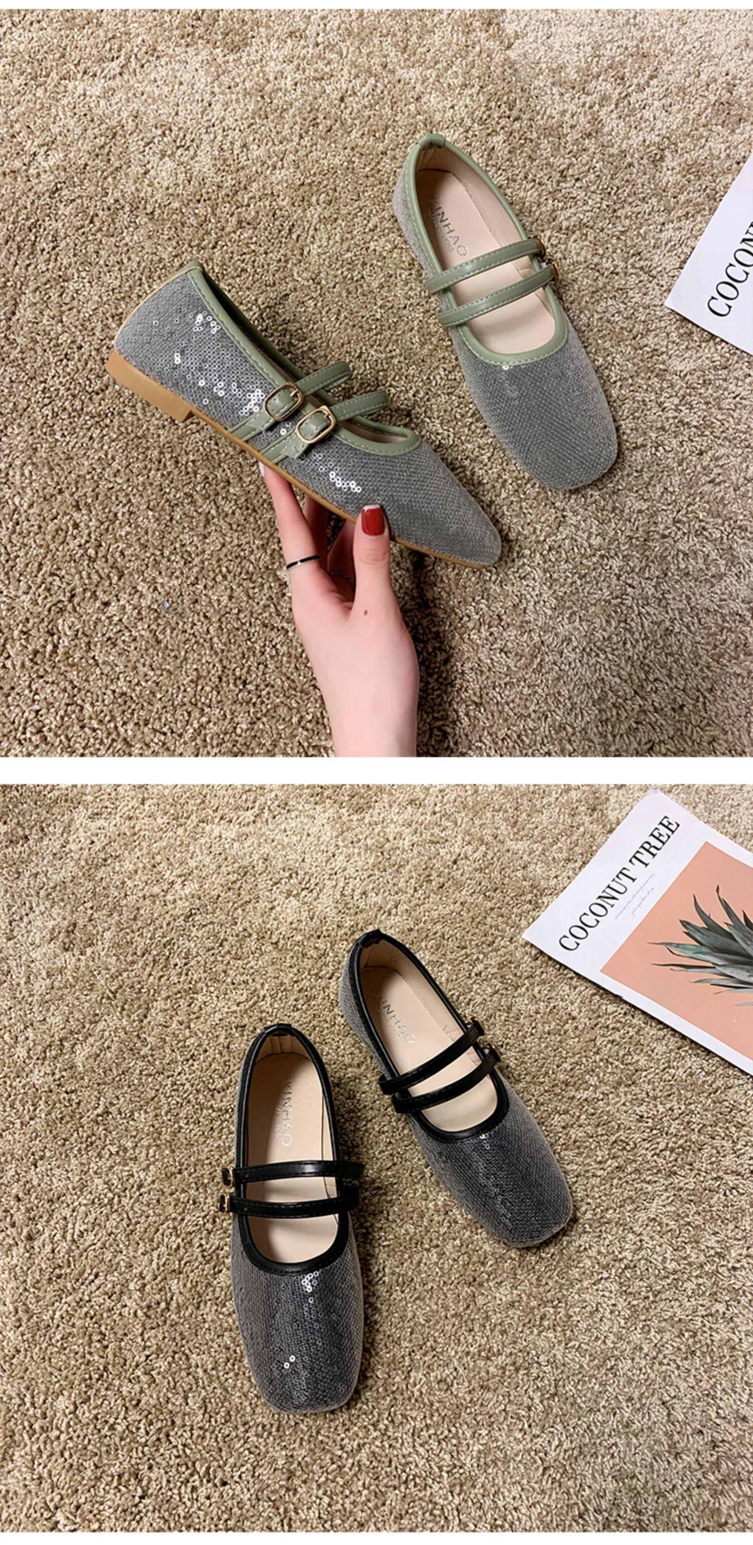 フラットボトムの女性の春と夏の2020新しいファッション野生のスパンコールスクープシューズスクエアヘッド春と秋のメアリージェーンの靴の潮 部族の婦人靴5095359
