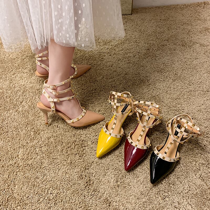 ネットの赤いサンダル女性のサンダルの女性の2020年夏の新しいバージョンは、ハイヒールの女性の野生の妖精風の柳の花嫁介添人の女性の靴を指摘しました 部族の婦人靴4192496