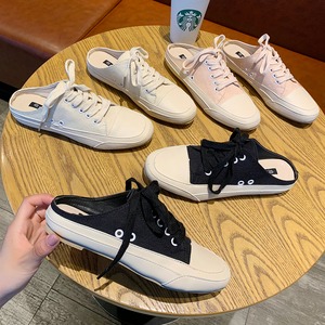 キャンバスドラッグ2020年の春と夏の新しいネット赤い正方形のヘッドレースアップレイジーシューズカジュアル包頭ミュラーハーフドラッグ 部族の婦人靴7700745
