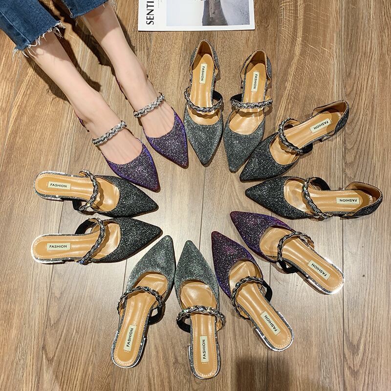 シングルシューズの女性の春/夏2020新しいラインストーンフラットボトム野生の先のとがった靴ネット赤い浅い口メアリージェーンの靴 部族の婦人靴6291635