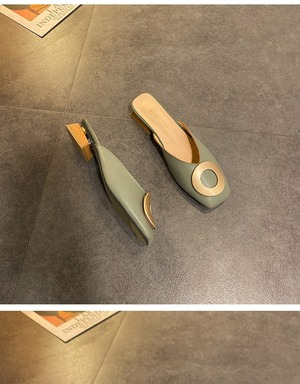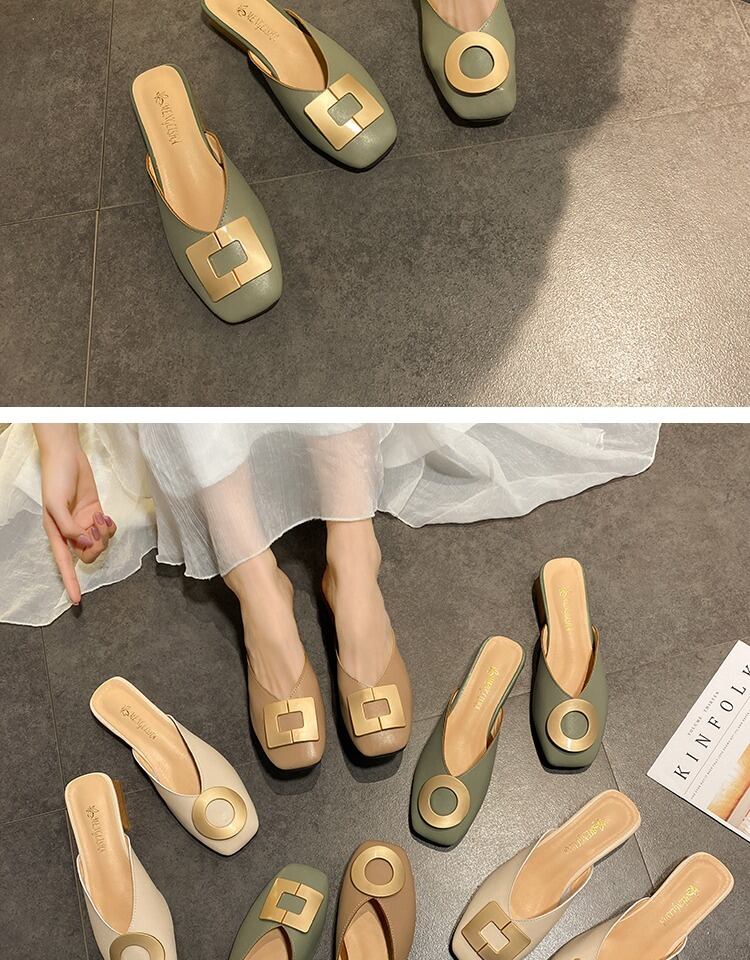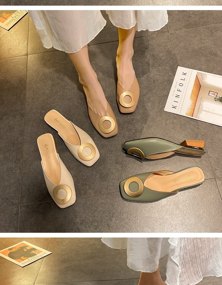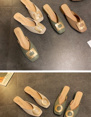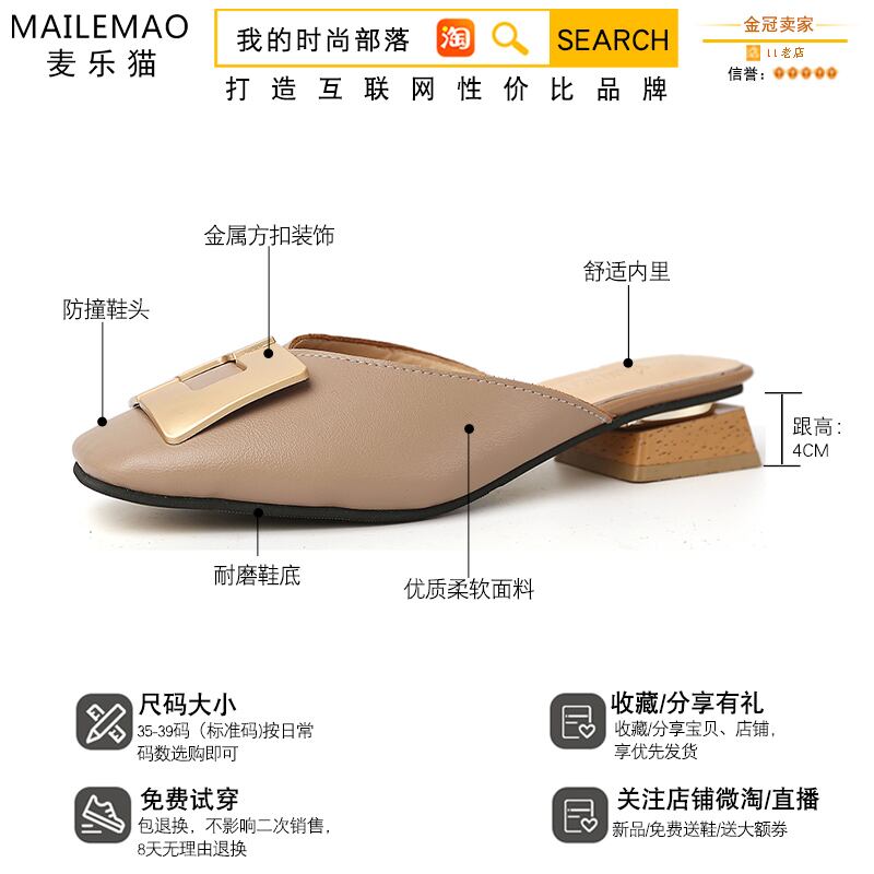2020年春と夏の新しいバージョンの包頭ハーフスリッパ厚いヒールのおばあちゃんの靴ソフトレザー快適な野生の怠惰なミュラー靴 部族の婦人靴3916762
