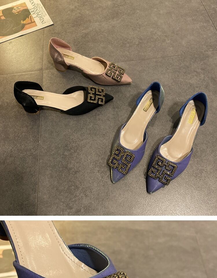 厚いヒールの靴の女性2020春の新しいファッション野生のネット赤の尖った浅い口の妖精スタイルスクープシューズ 部族の婦人靴6891381