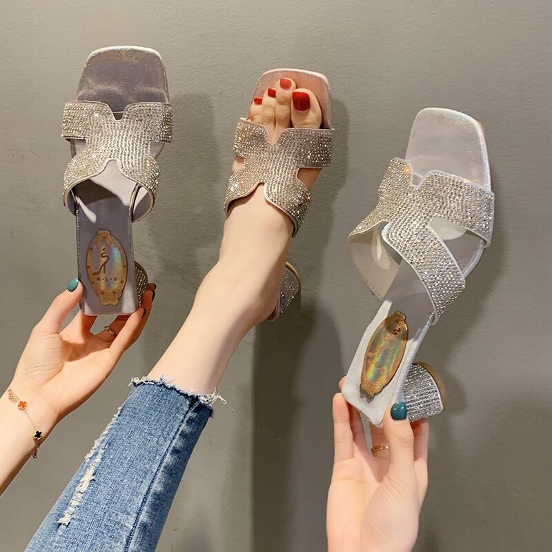 ヒールのスリッパ女性はファッショナブルなフェアリースタイル2020春の新しい野生のネット赤厚いラインストーンサンダルとスリッパ女性を着用します。 部族の婦人靴9440620