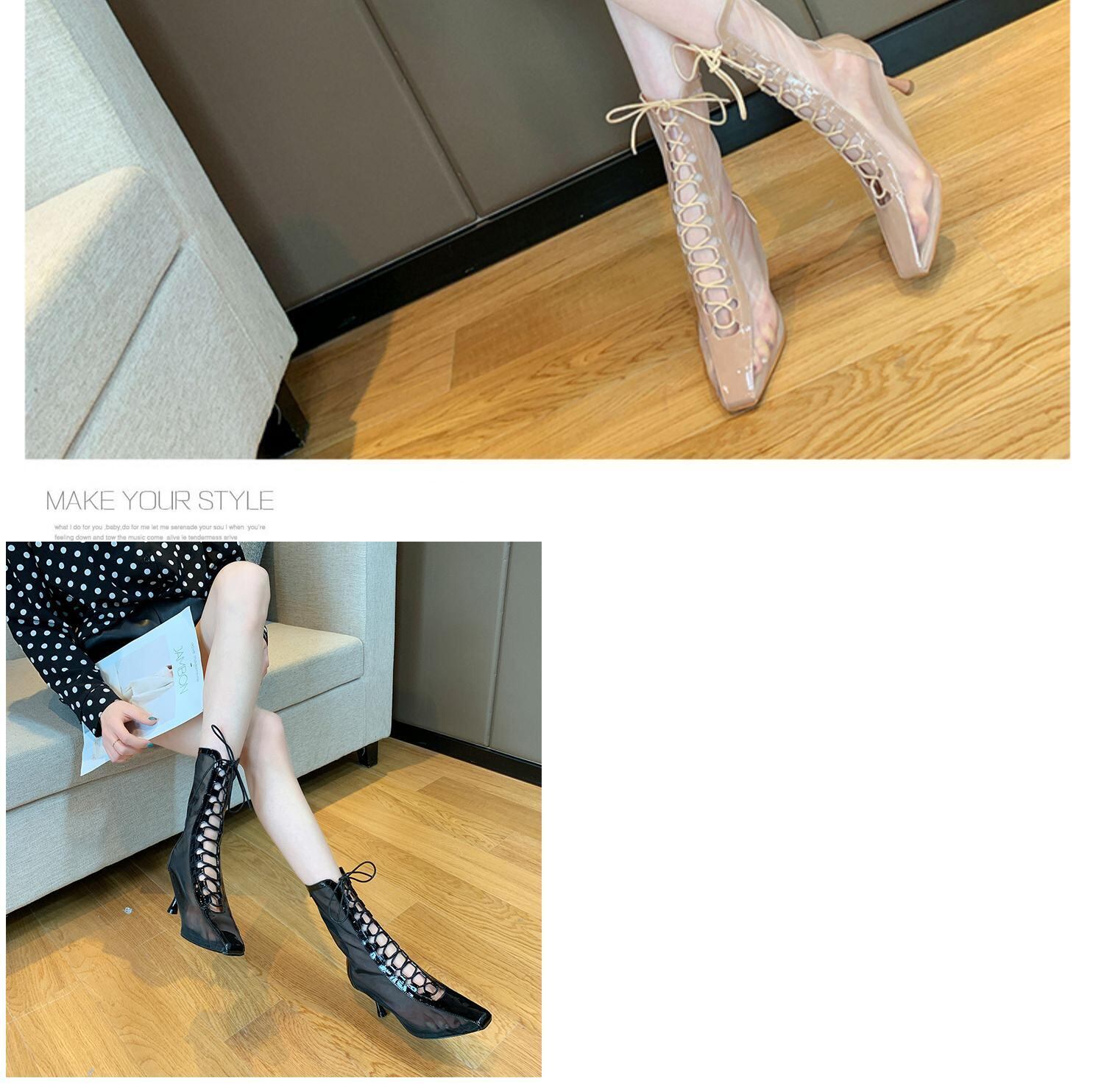 ヒールブーツ女性2020春の新しいファッション野生の通気性ネット赤イン潮ストラップヒールサンダル 部族の婦人靴9804287