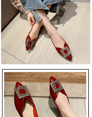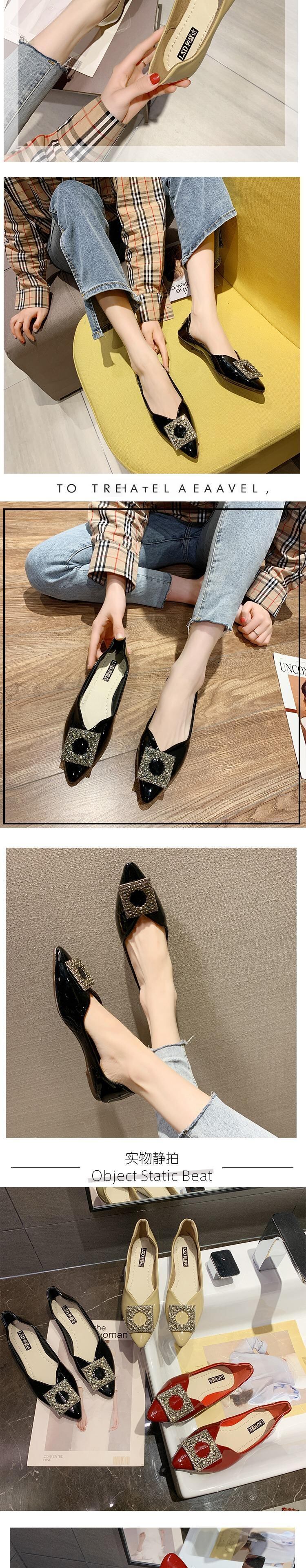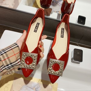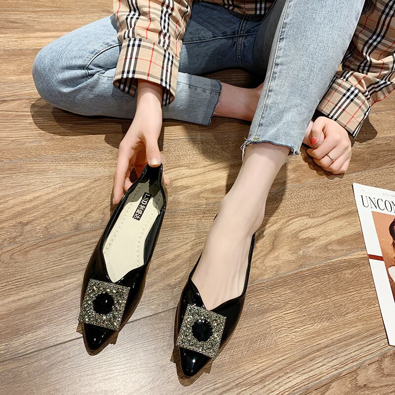 シングルシューズ女性2020春の新しいinsメタルスクエアバックルワイルドネット赤いスクープシューズは、フラットビーニーシューズを指摘しました 部族の婦人靴2777581