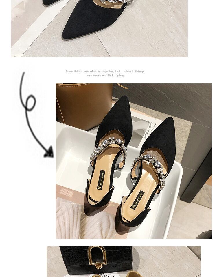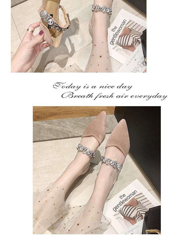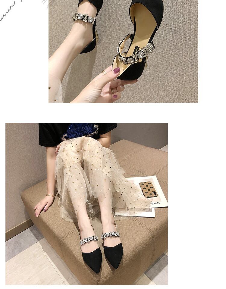 フェアリースタイルのローヒールの靴女性2020春の新しいバージョンの野生の先のとがった先のとがったイブニングシューズラインストーンセット足のエンドウ豆の靴 部族の婦人靴2892280