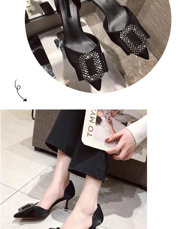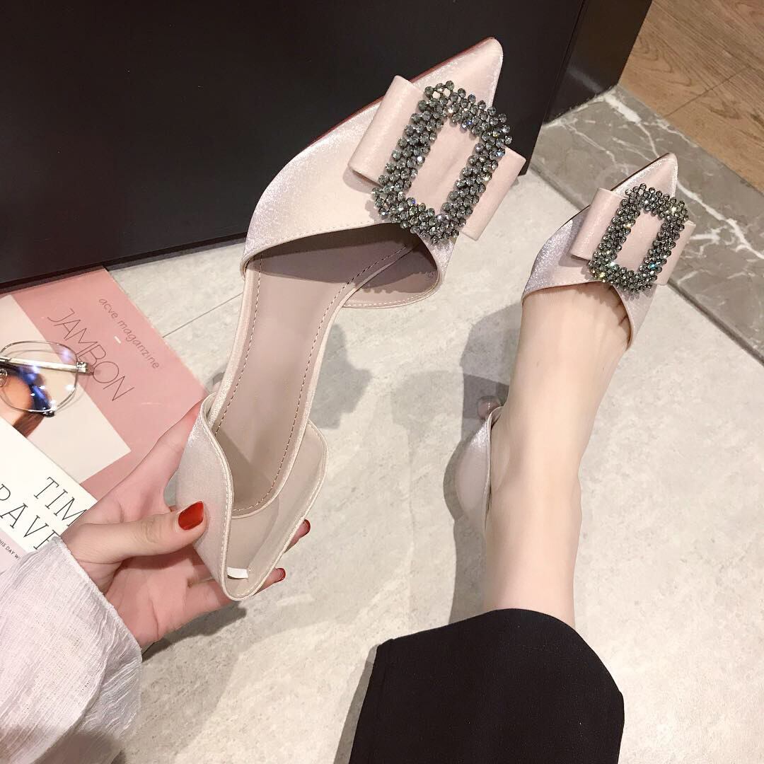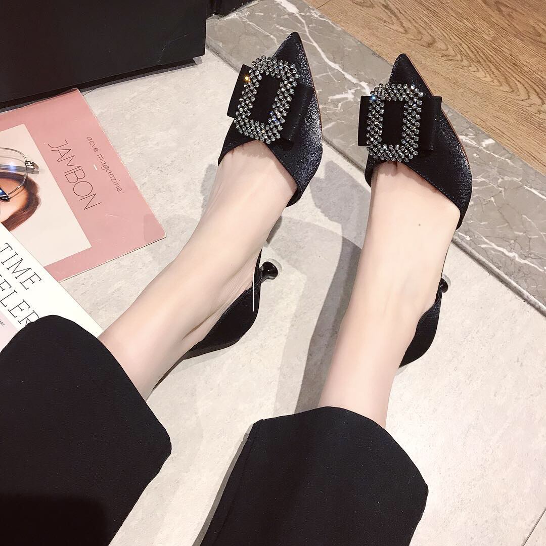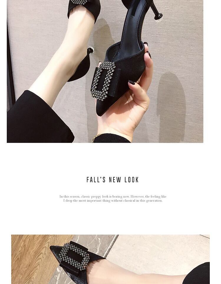 サンダル女性2020夏新気質ファッションラインストーンスクエアバックル細かいヒール指摘フレンチハイヒール 部族の婦人靴8876882