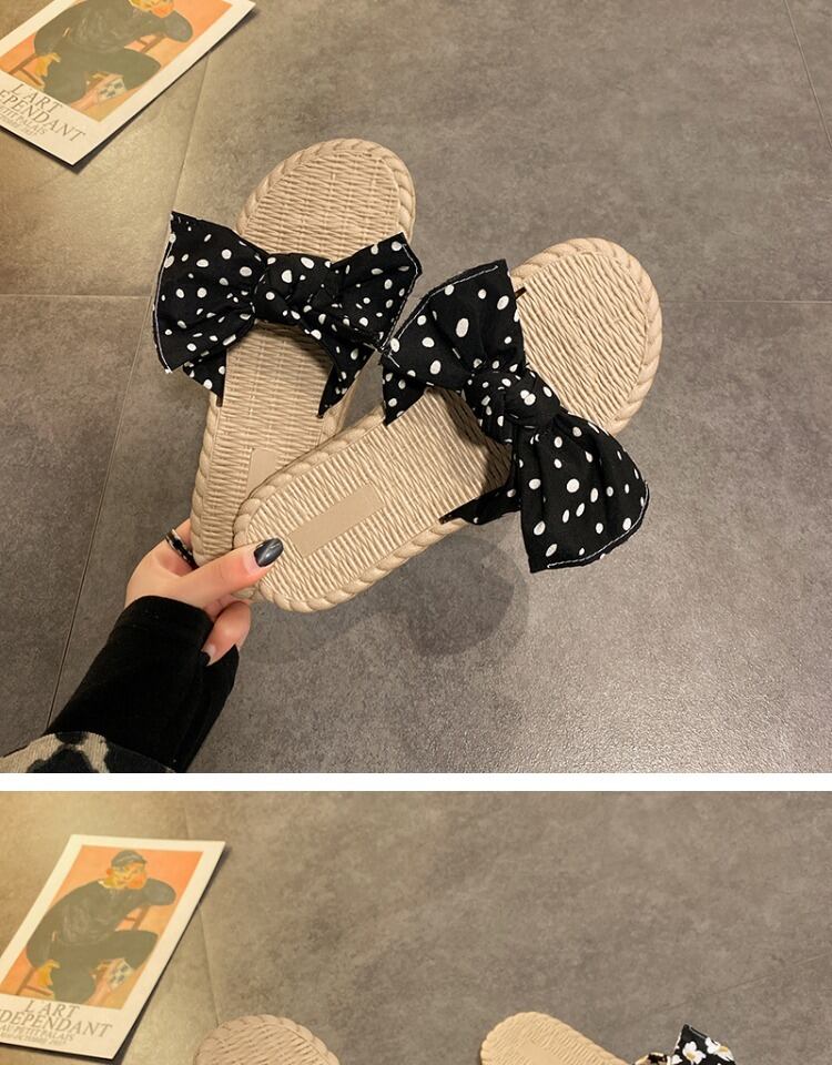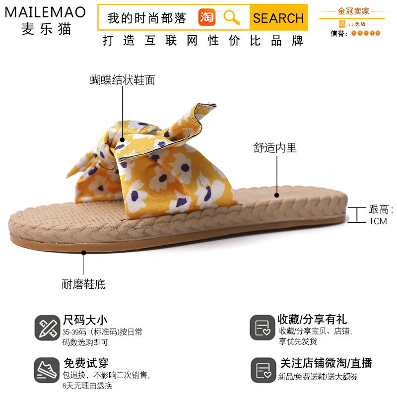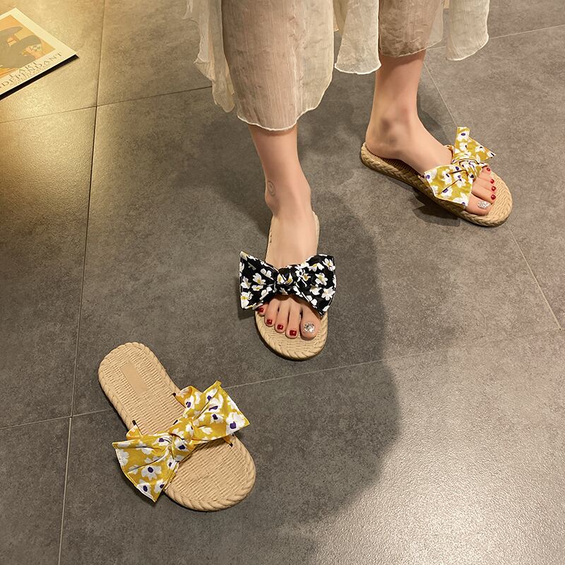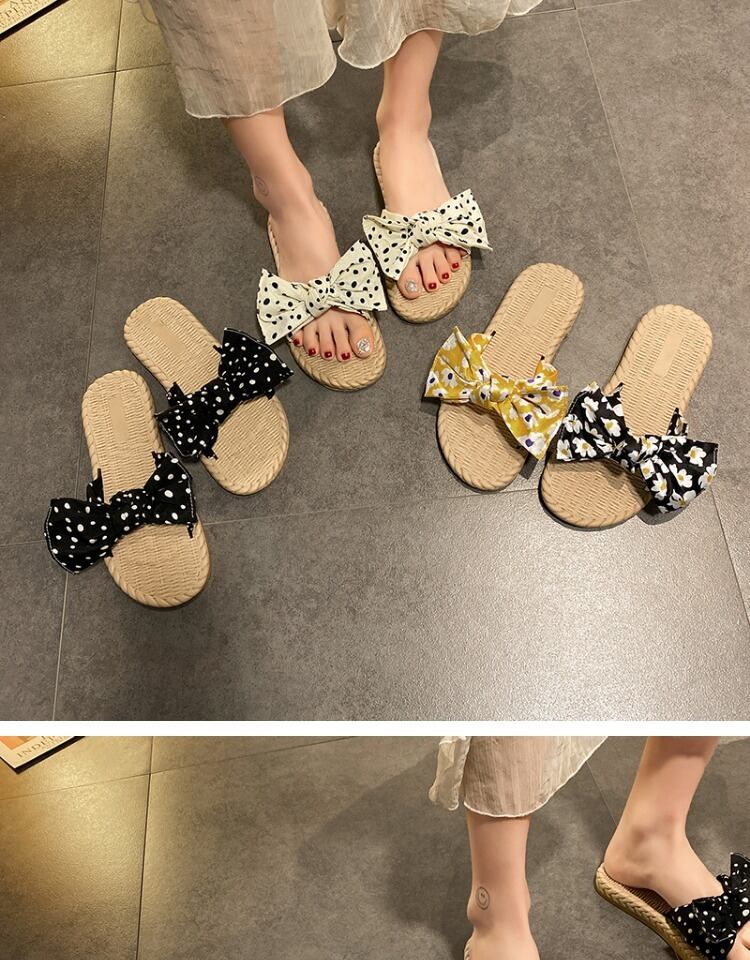 女性のサンダルとスリッパは、2020年夏の新しいバージョンの弓の野生のビーチスリッパフラットボトムスリッパの女性を着用します 部族の婦人靴4758228