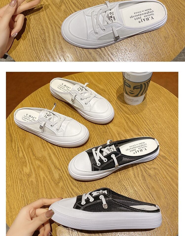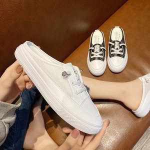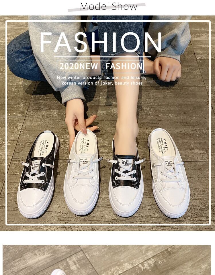 包頭ハーフスリッパ女性の摩耗2020春の新しい学生フラットボトムワイルドネットレッドラウンドヘッドミュラーシューズ女性 部族の婦人靴4723405