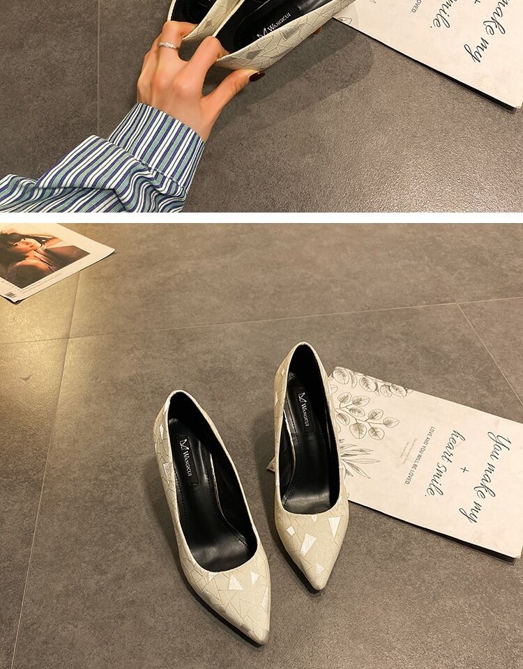 ヒールの女性の野生の妖精スタイル2020新しい春の先のとがった浅い口の女性の靴罰金のヒールフランスの気質の単一の靴の女性 部族の婦人靴2173679