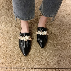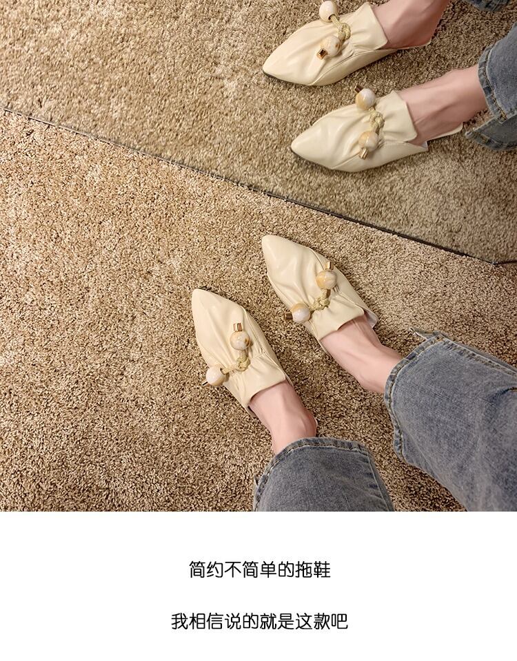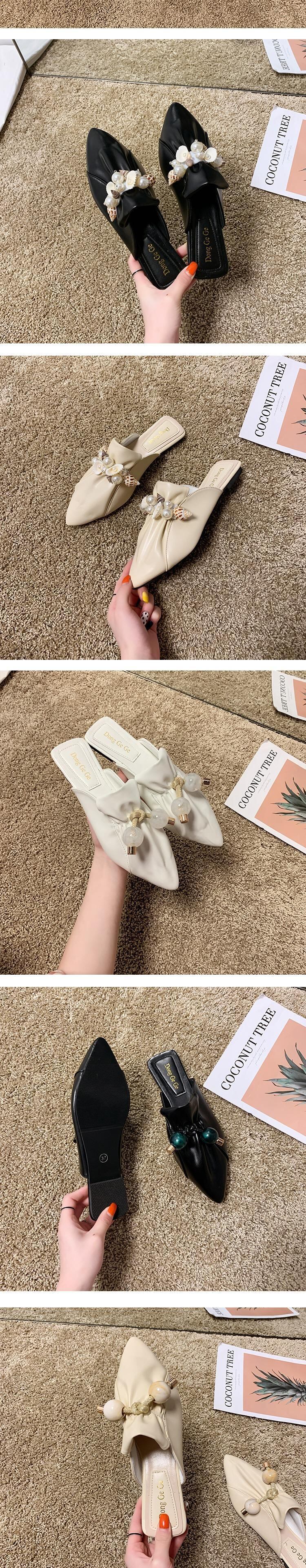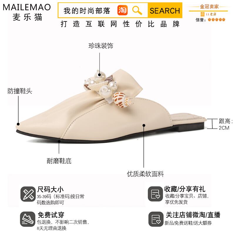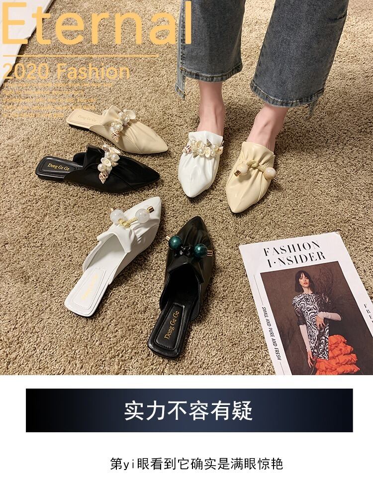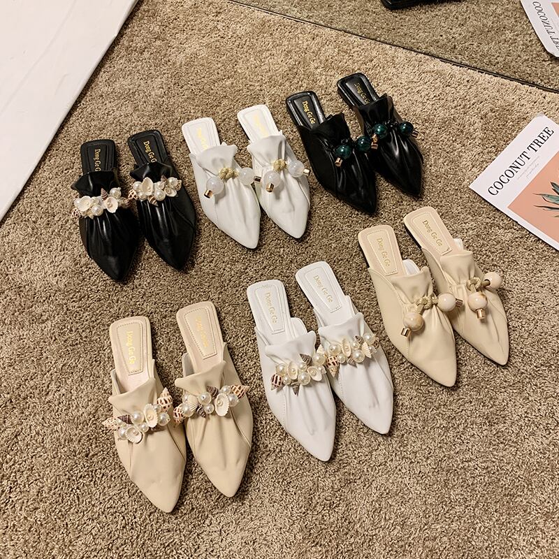 インポートスタイルレディースシューズポインテッドミュールスリッパ2020夏新包頭カジュアルレイジーパールハーフスリッパ 部族の婦人靴3018004