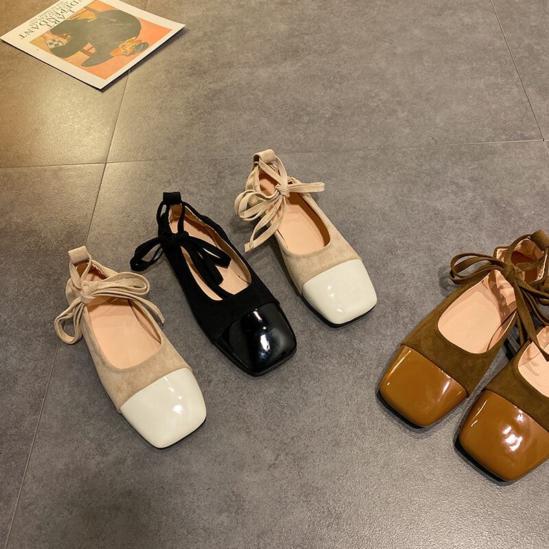 シングルシューズ女性2020新しい春のスクエアヘッドおばあちゃんの靴野生のフラットボトムストラップバレエレトロビーニーシューズ 部族の婦人靴5546711
