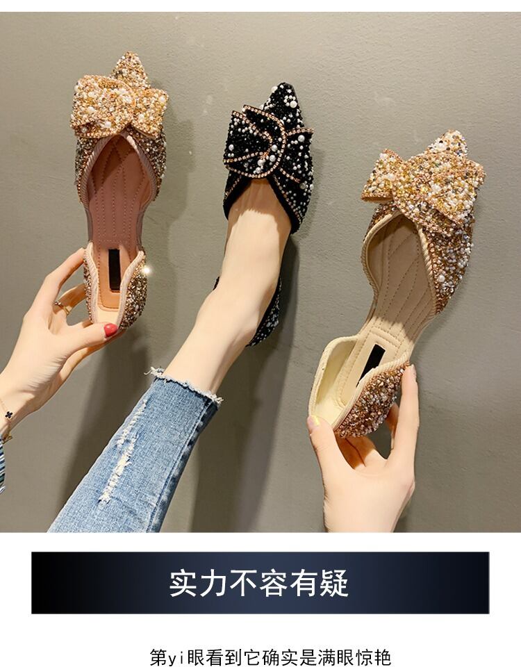 エンドウシューズ女性2020年春と秋の新しい野生のパールラインストーン浅い口ネット赤い妖精スタイルフラットシューズ 部族の婦人靴9061591