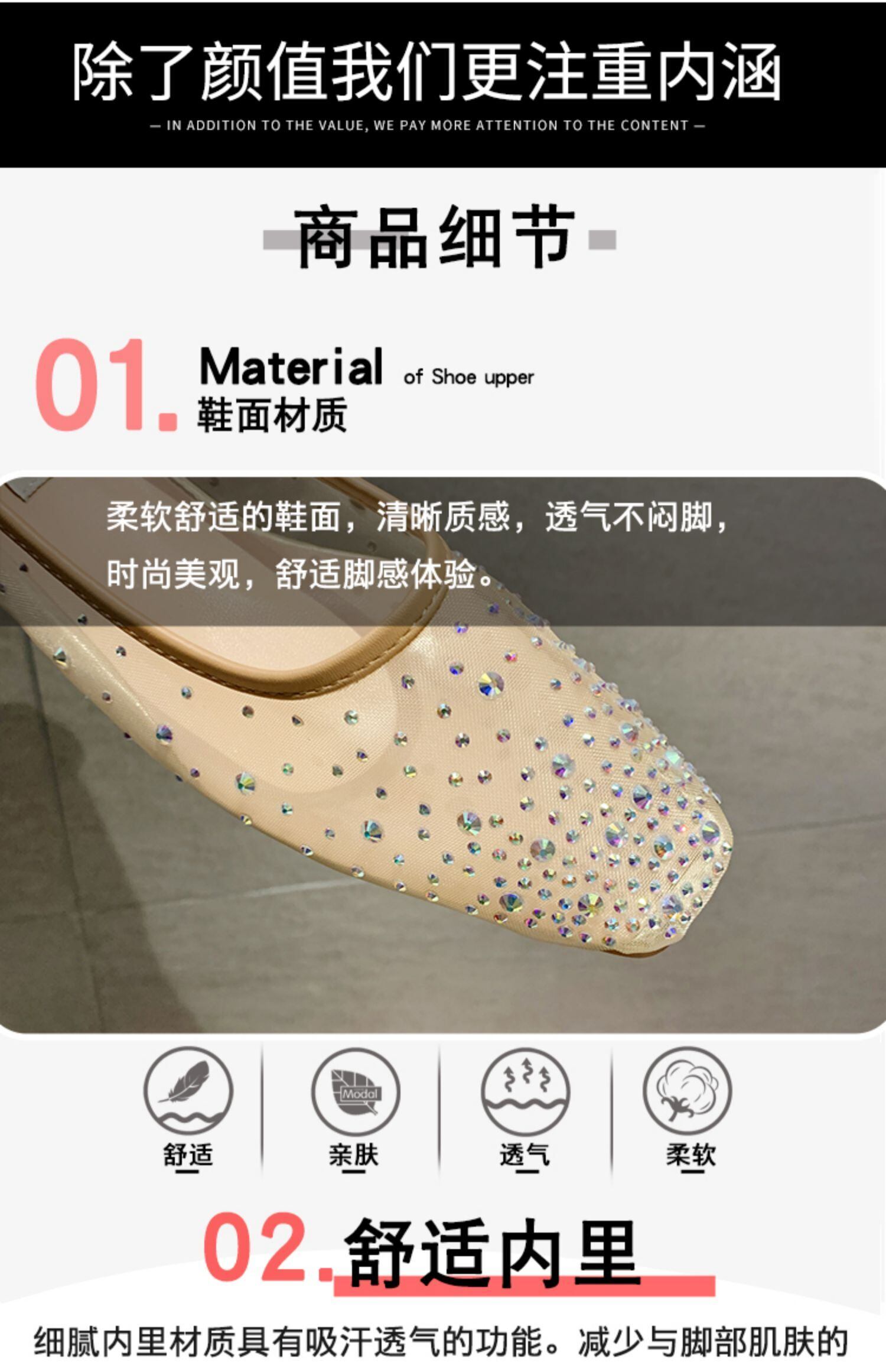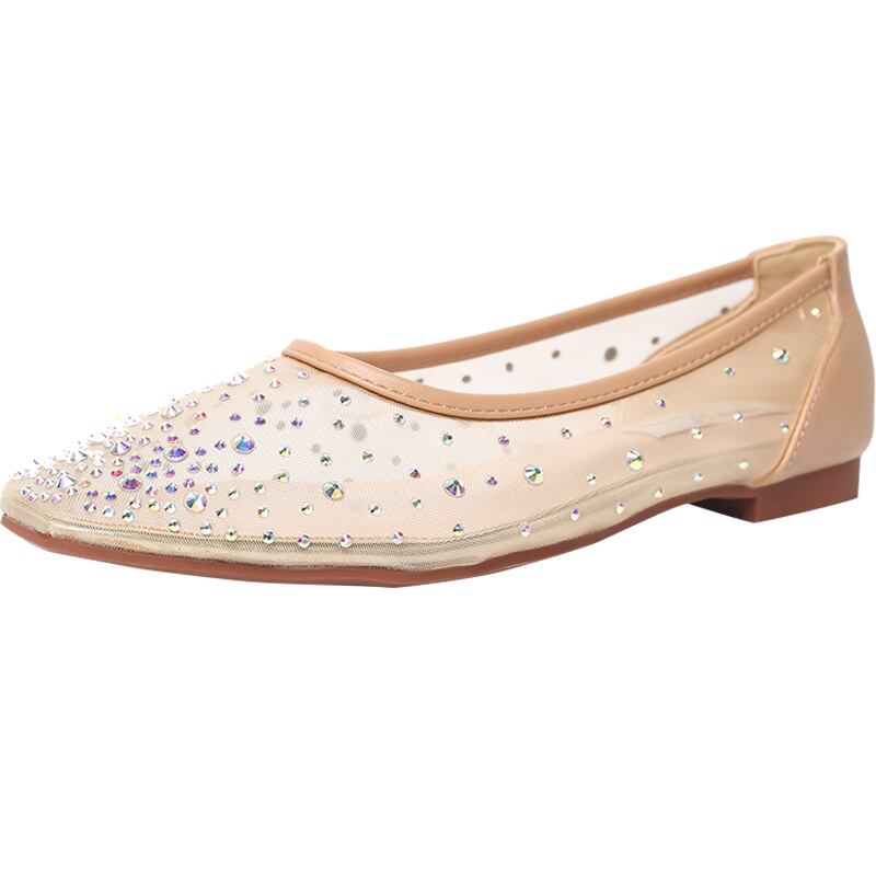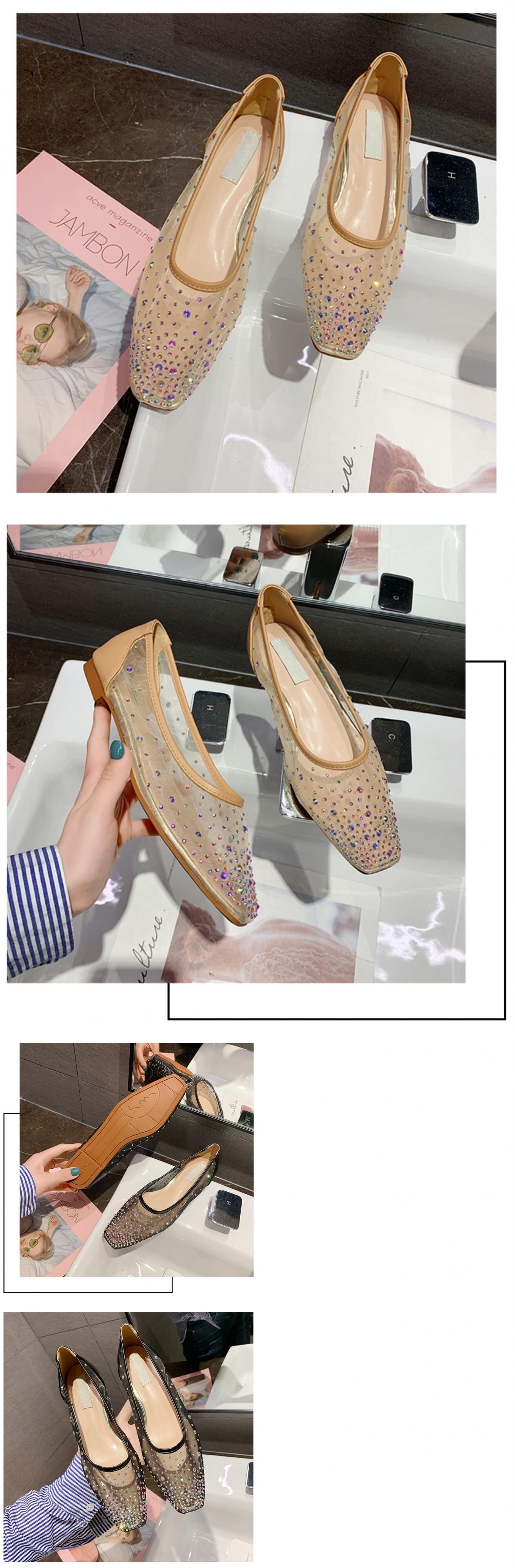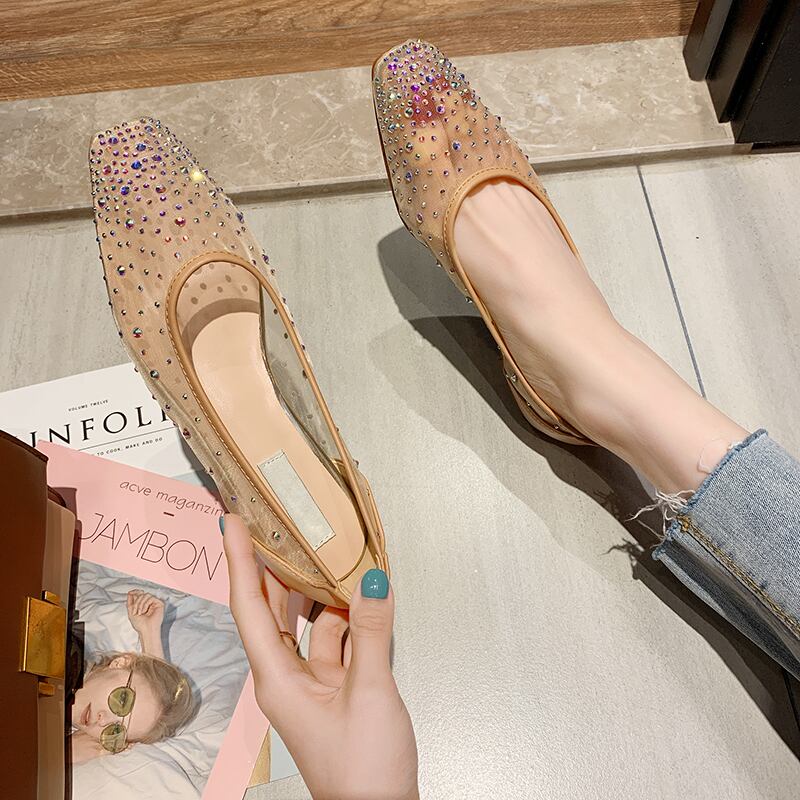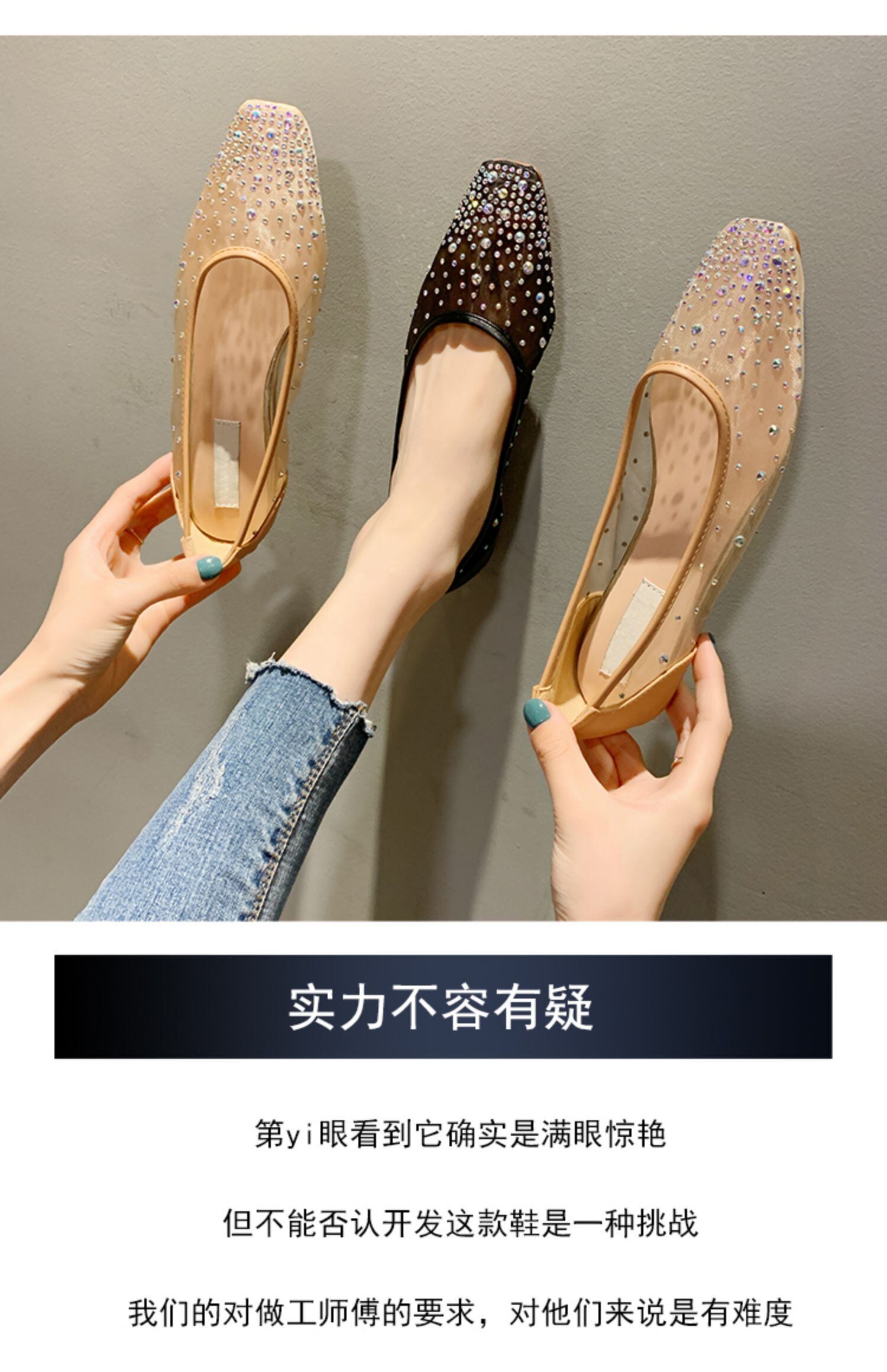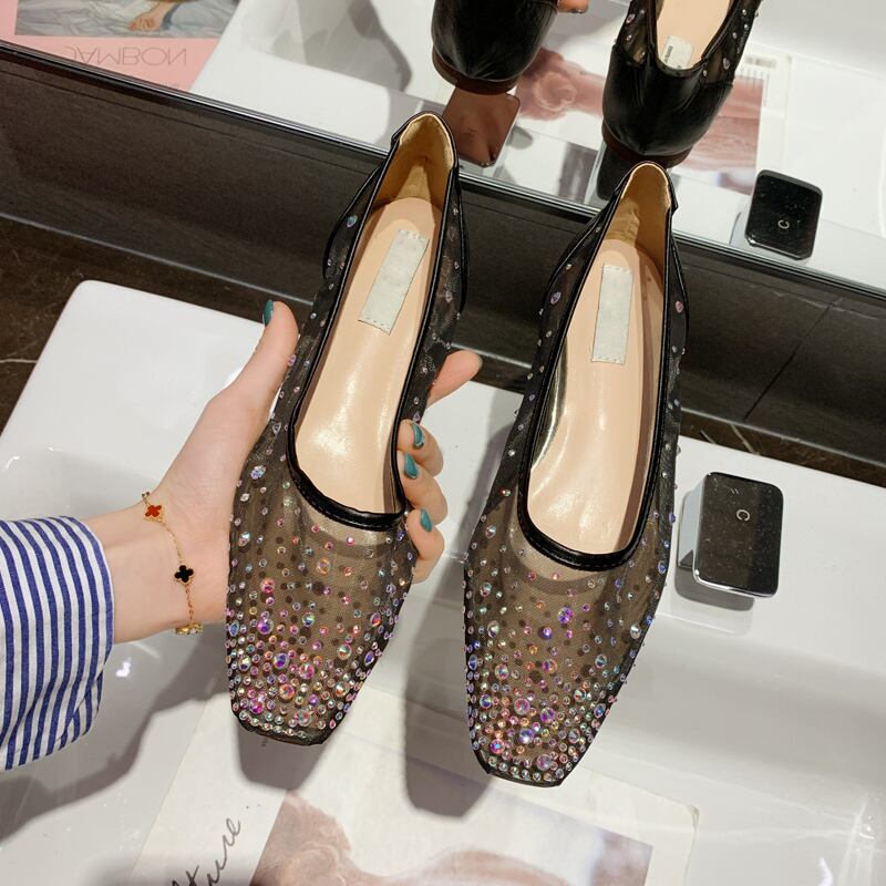 女性のシングルシューズ2020新しいバージョンのラインストーンメッシュ浅い口おばあちゃんの靴女性のネット赤の正方形の底野生のフローティングシューズ 部族の婦人靴8580898