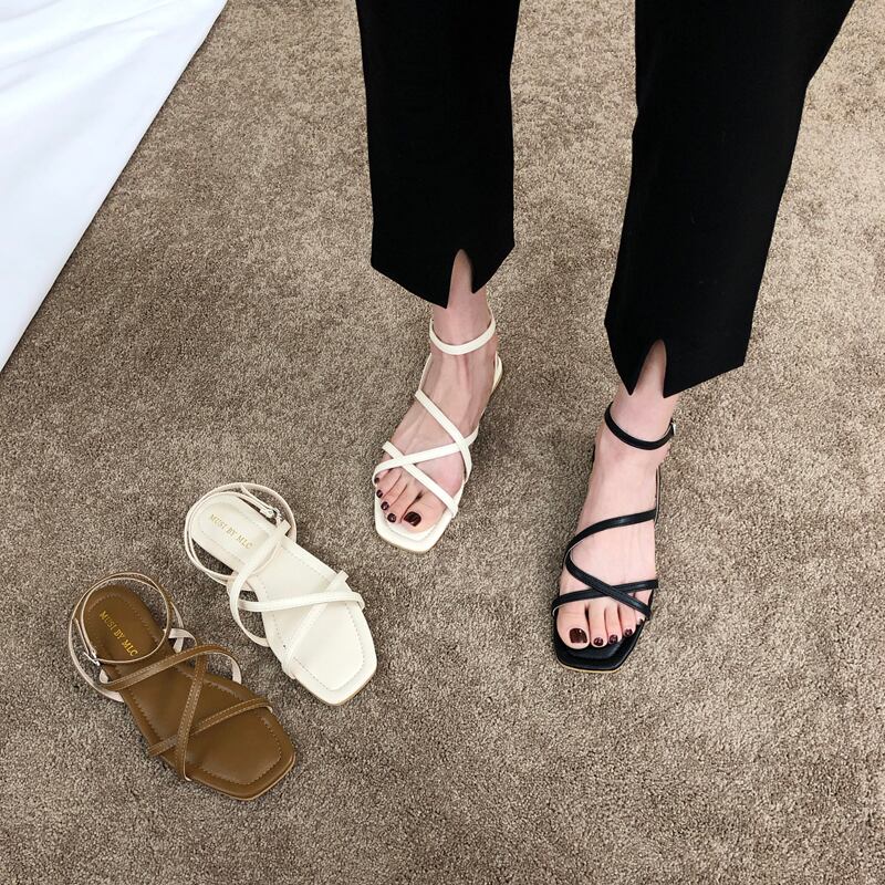 サンダル女性の妖精風2020新しい夏のクロスローマンシューズワードベルト穏やかな靴学生フラットボトムイブニングシューズ 部族の婦人靴6192906
