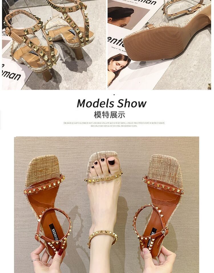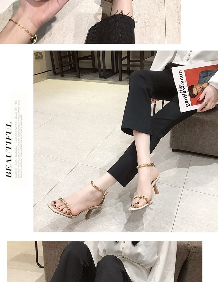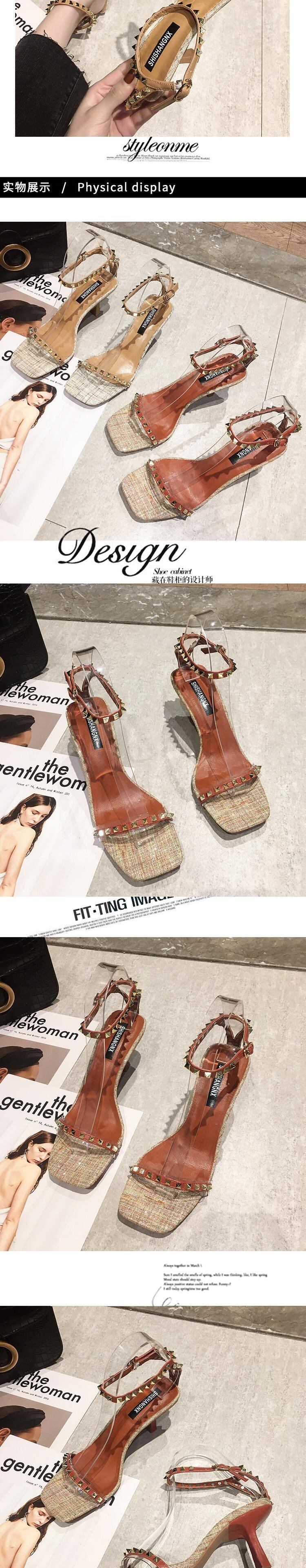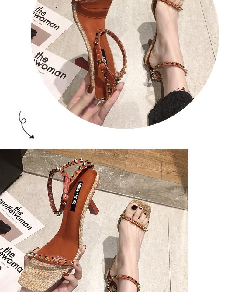 女性のハイヒールの靴2020年春の新バージョンのリベットワイルドシンワードバックルシングルシューズネットレッドポインテッドサンダル 部族の婦人靴3976474