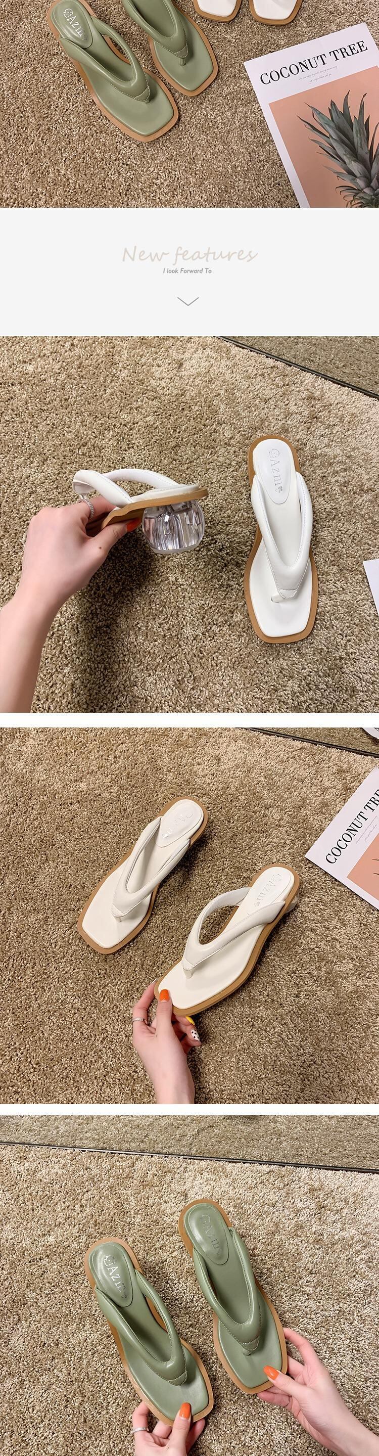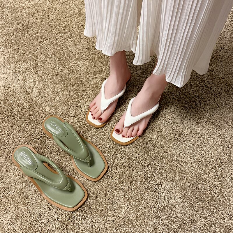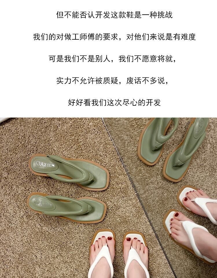 ビーチサンダルの女性は20春と夏の新しいinsバージョンスクエアヘッド野生の厚いヒールクリップサンダルビーチシューズの女性を着用します 部族の婦人靴8792505