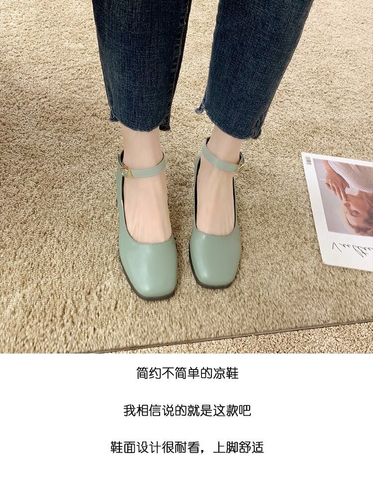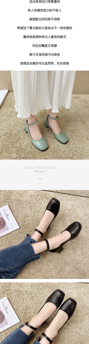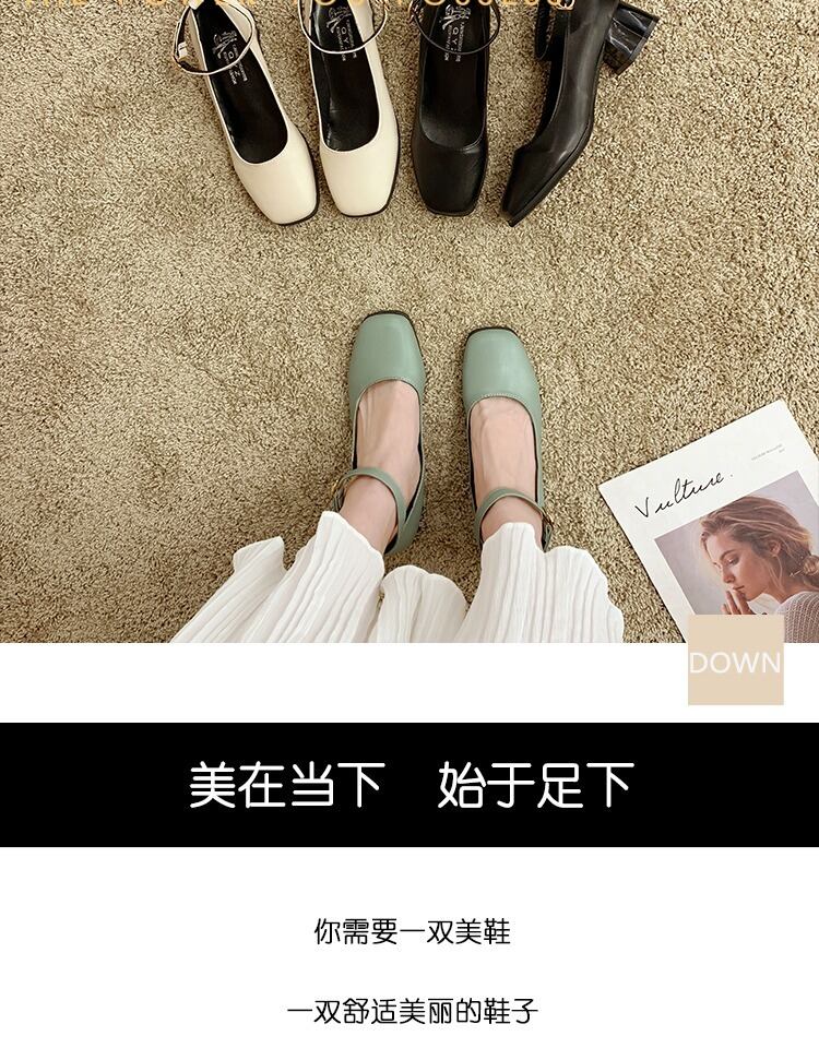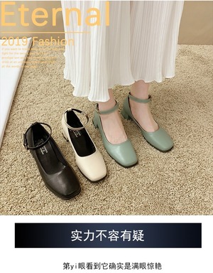 女性の靴2019夏の新しいバージョンの厚いヒールワイルドネットレッドシングルシューズスクエアヒールファッションワードバックルメアリージェーンシューズ 部族の婦人靴6697290