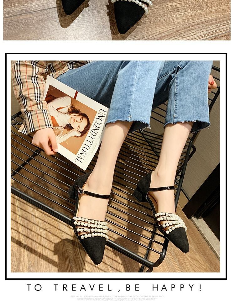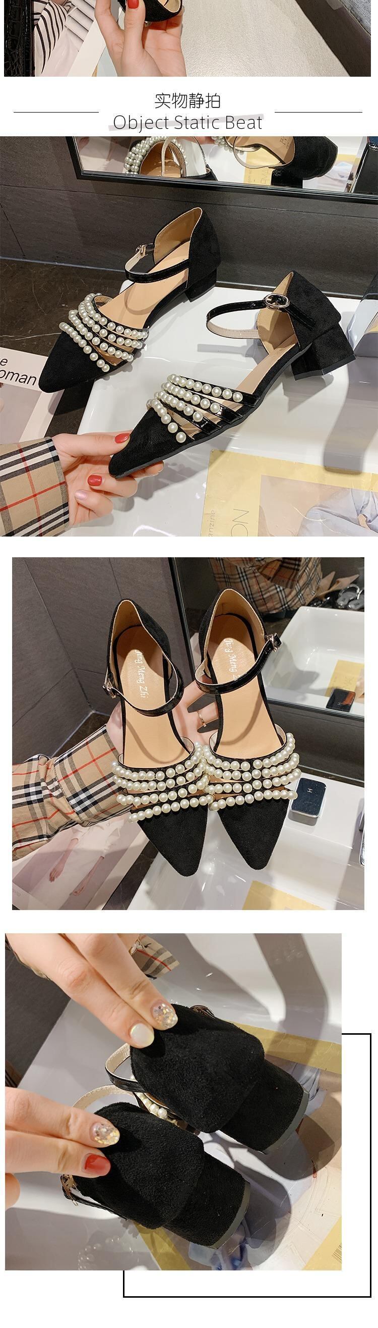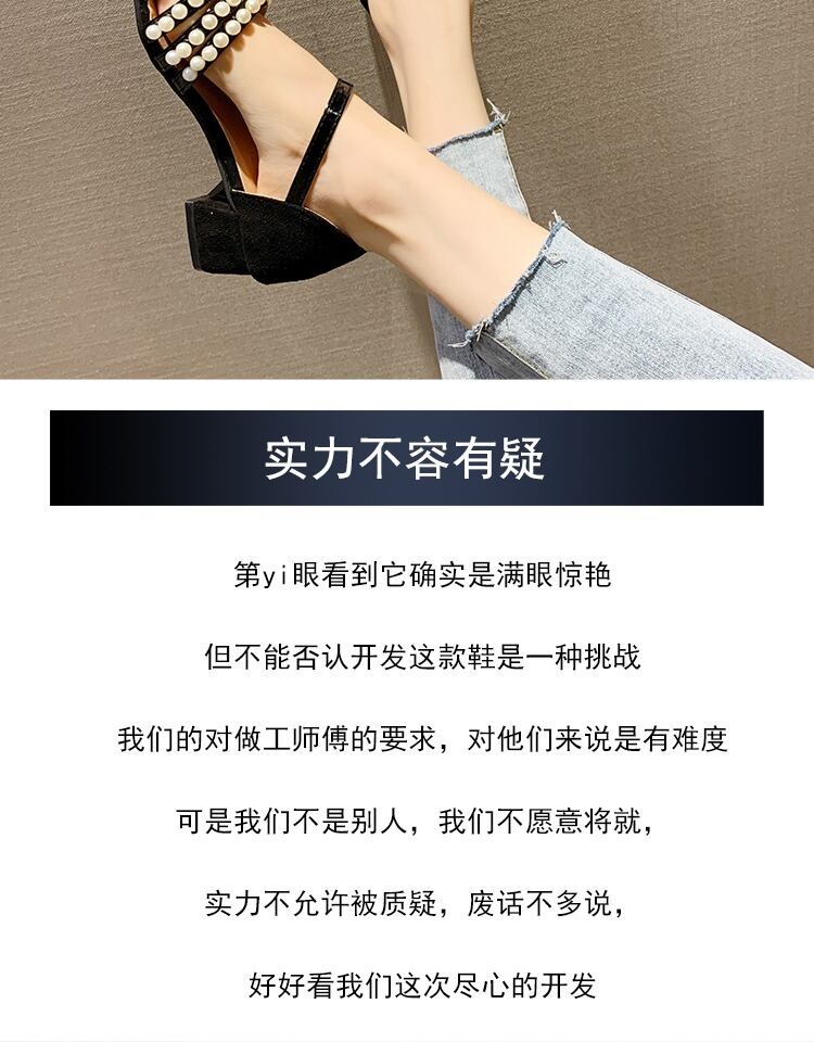 サンダル女性の妖精スタイル2020春と夏の新しい真珠の野生包頭ワードバックル厚ヒールハイヒールのローマの靴 部族の婦人靴6719947