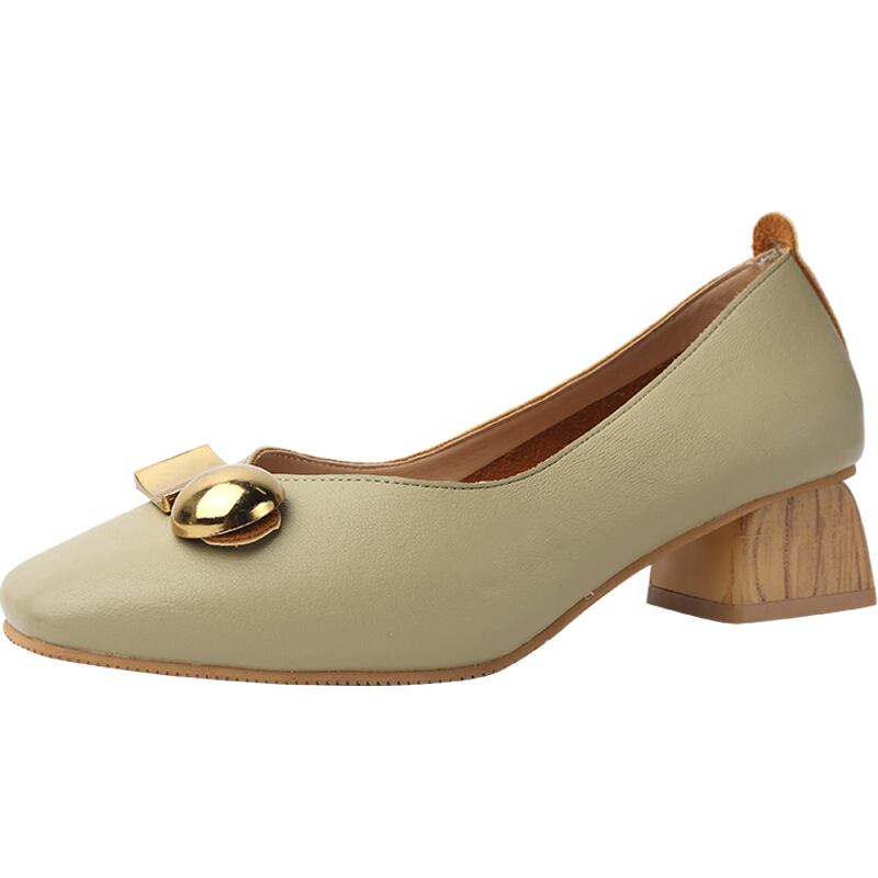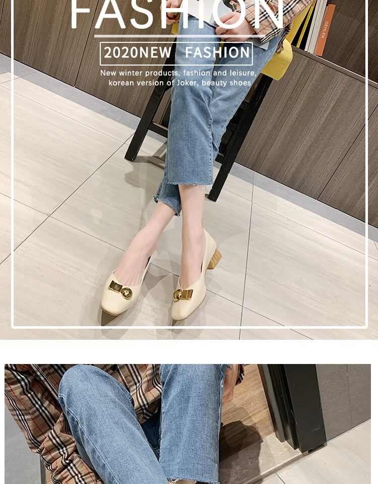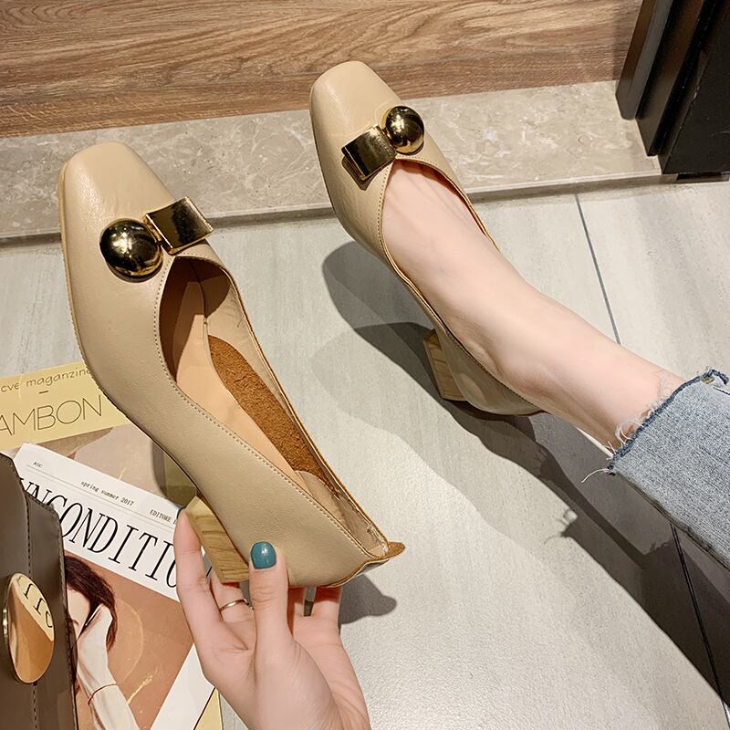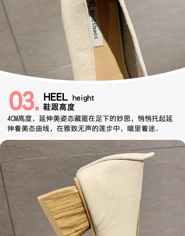 シングルシューズレディース2020春新しいinsバージョンスクエアヘッドワイルドネットレッド厚い優しい妖精風おばあちゃんシューズレディース 部族の婦人靴0763599