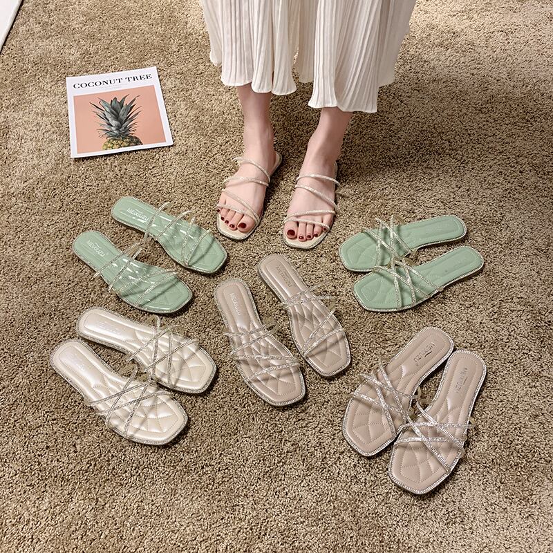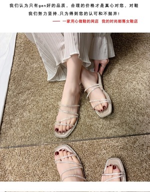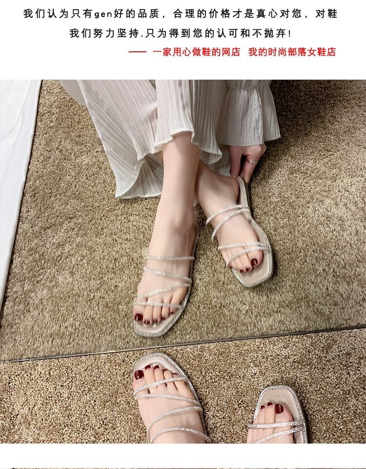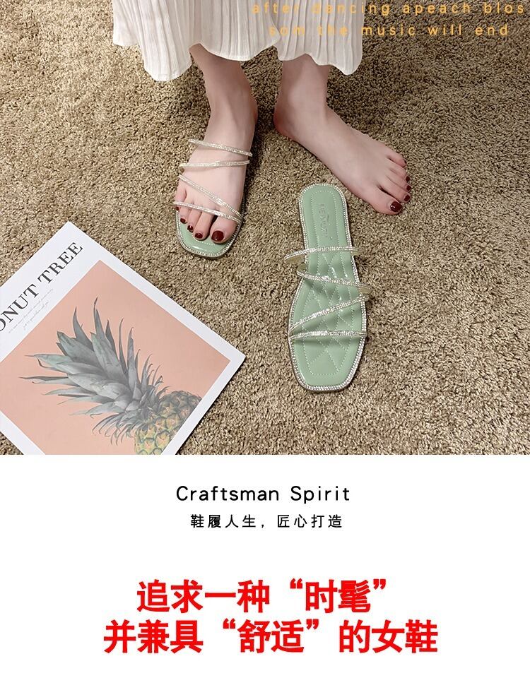 スリッパ女性insタイド2020夏の新しいラインストーンフラットボトムファッションは、ワードドラッグワイルドネット赤いサンダルを着用します 部族の婦人靴8711607