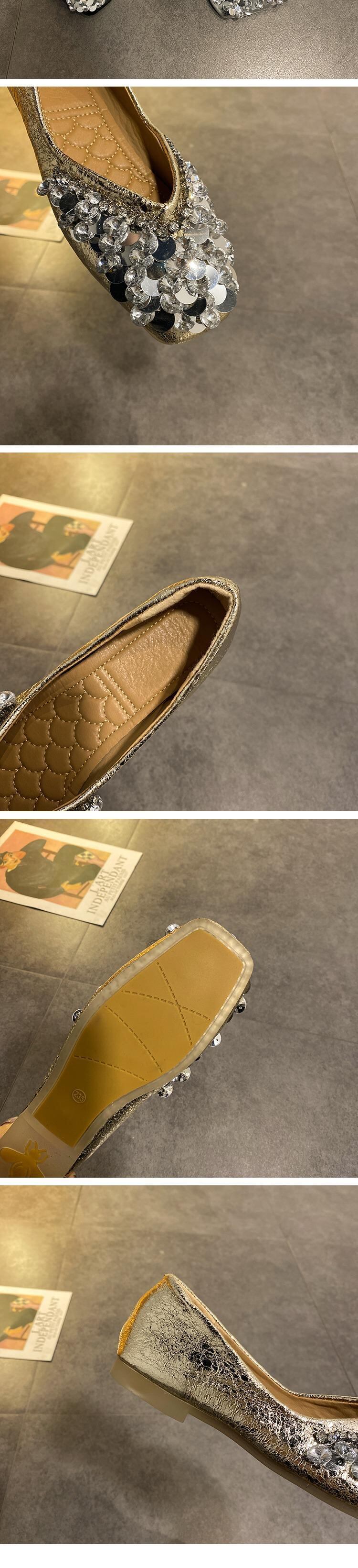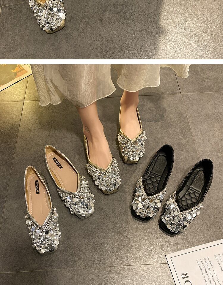 シングルシューズ女性2020春と夏の新しい野生のファッションスパンコールラインストーンフラットスクープ靴快適な正方形の頭浅い口の女性の靴女性 部族の婦人靴3175454